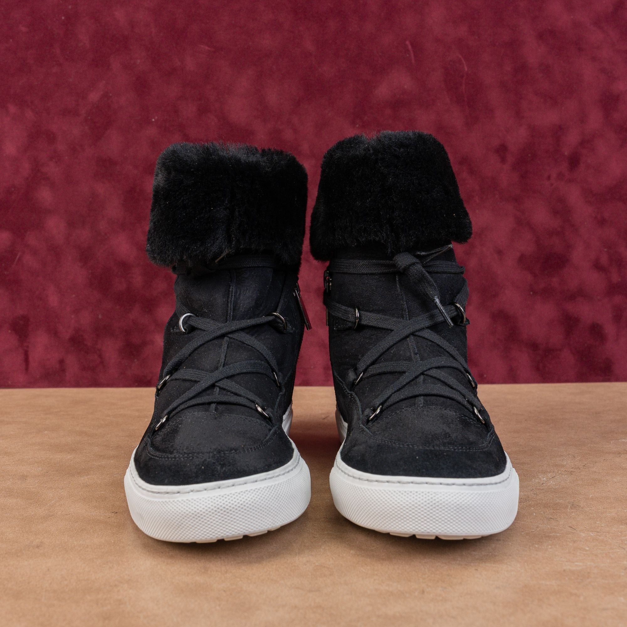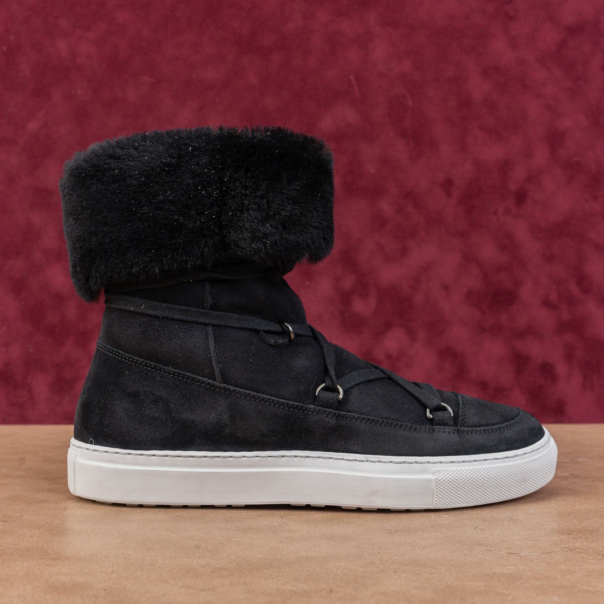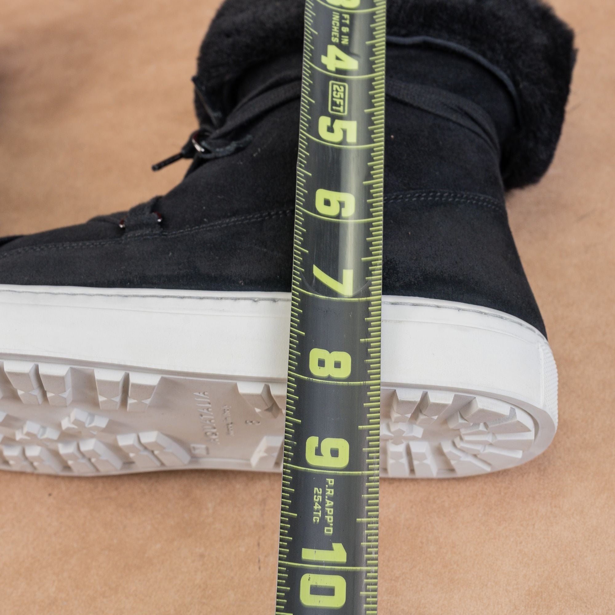 New Condition. No signs of wear on the soles. never Worn. Retails for $395. Round toe. Runs 1/2 Size smaller fits a size 7.5. Smooth Italian Suede upper, Shearling Lining and synthetic sole. Partial side zipper for easy and off. Made in Italy. Please check photos carefully for more information and details. SKU11844