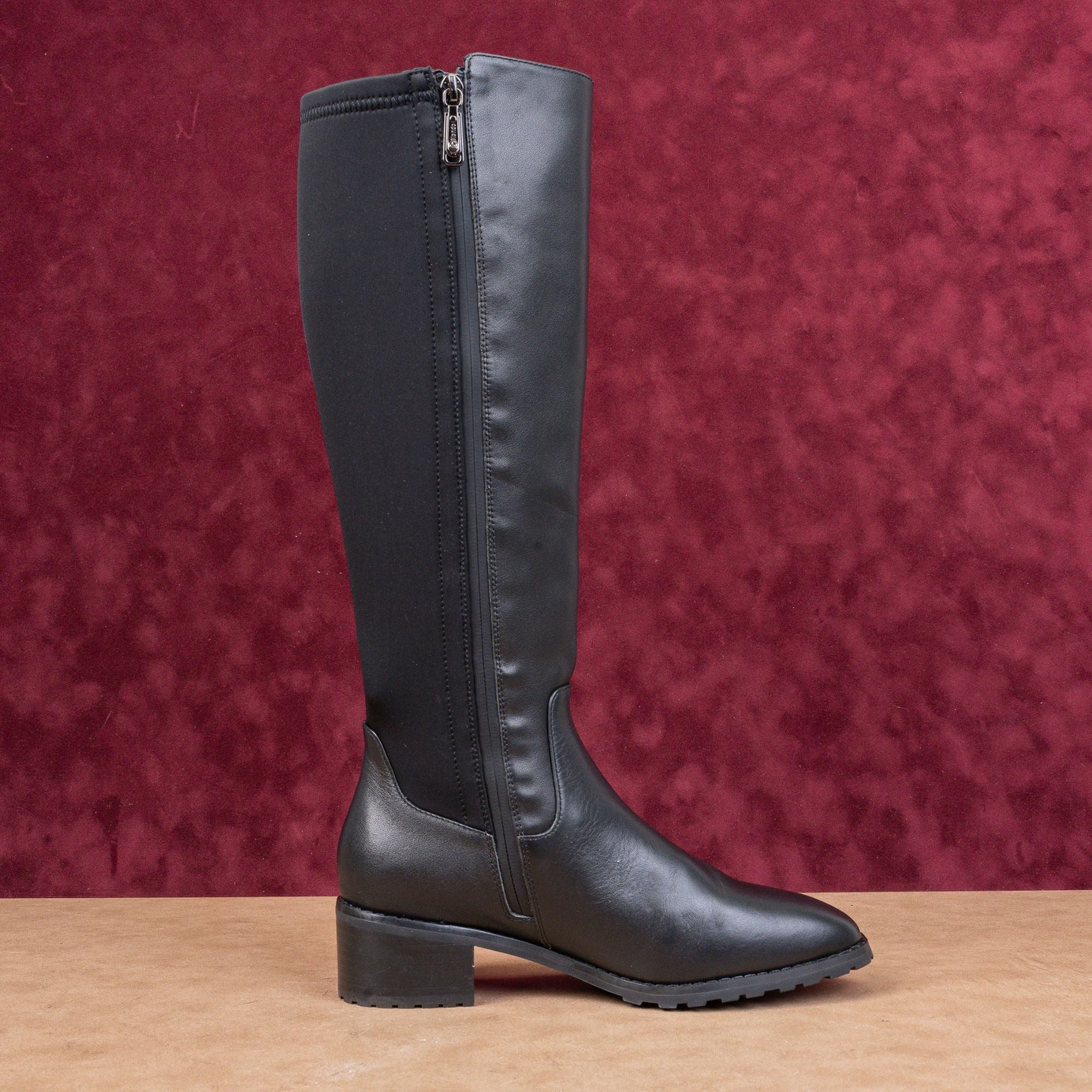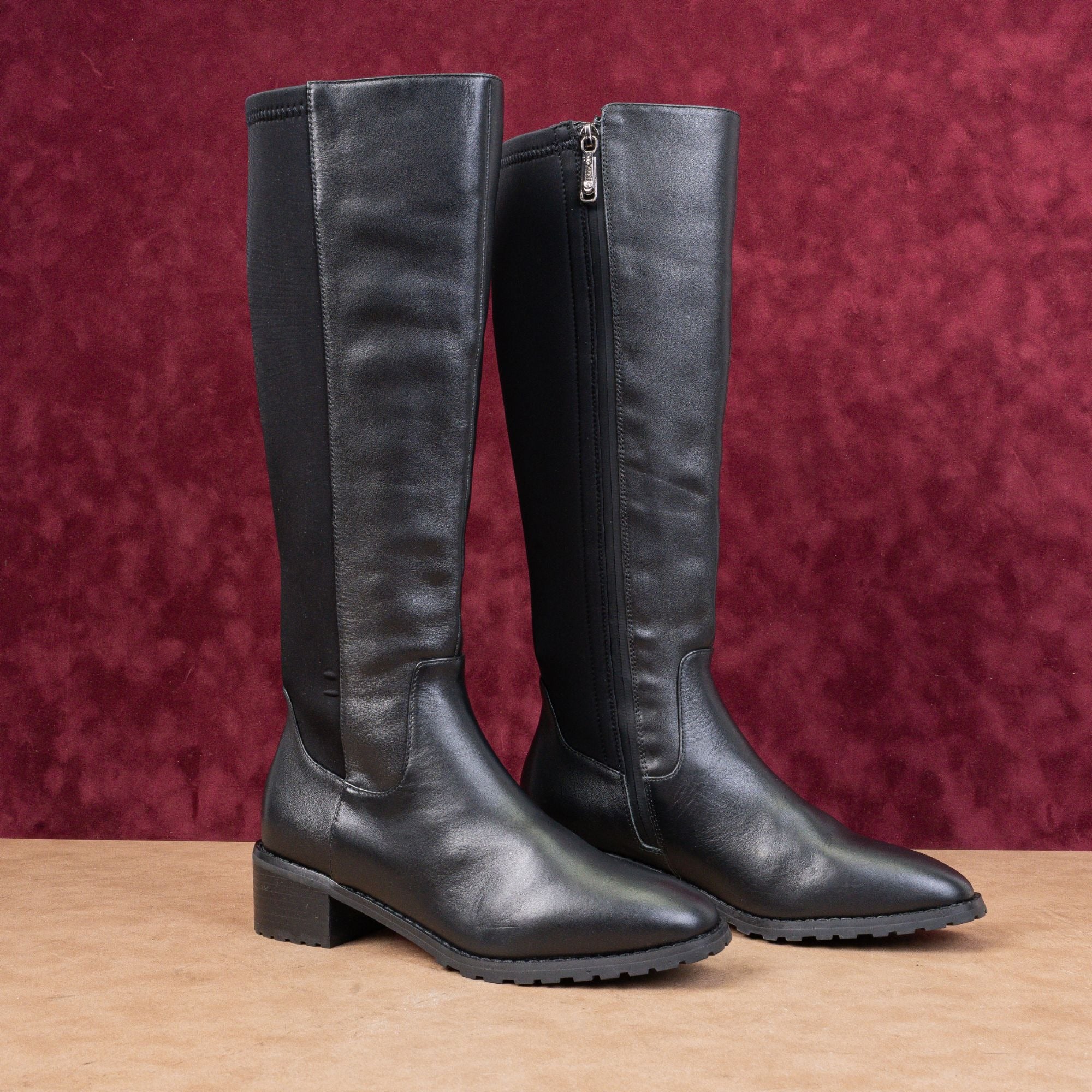 This knee-high boot features a 100% waterproof leather front and a flexible stretch-panel back for a perfect, accommodating fit. A cushioned insole and side zip make it the ideal all-day, all-weather boot.