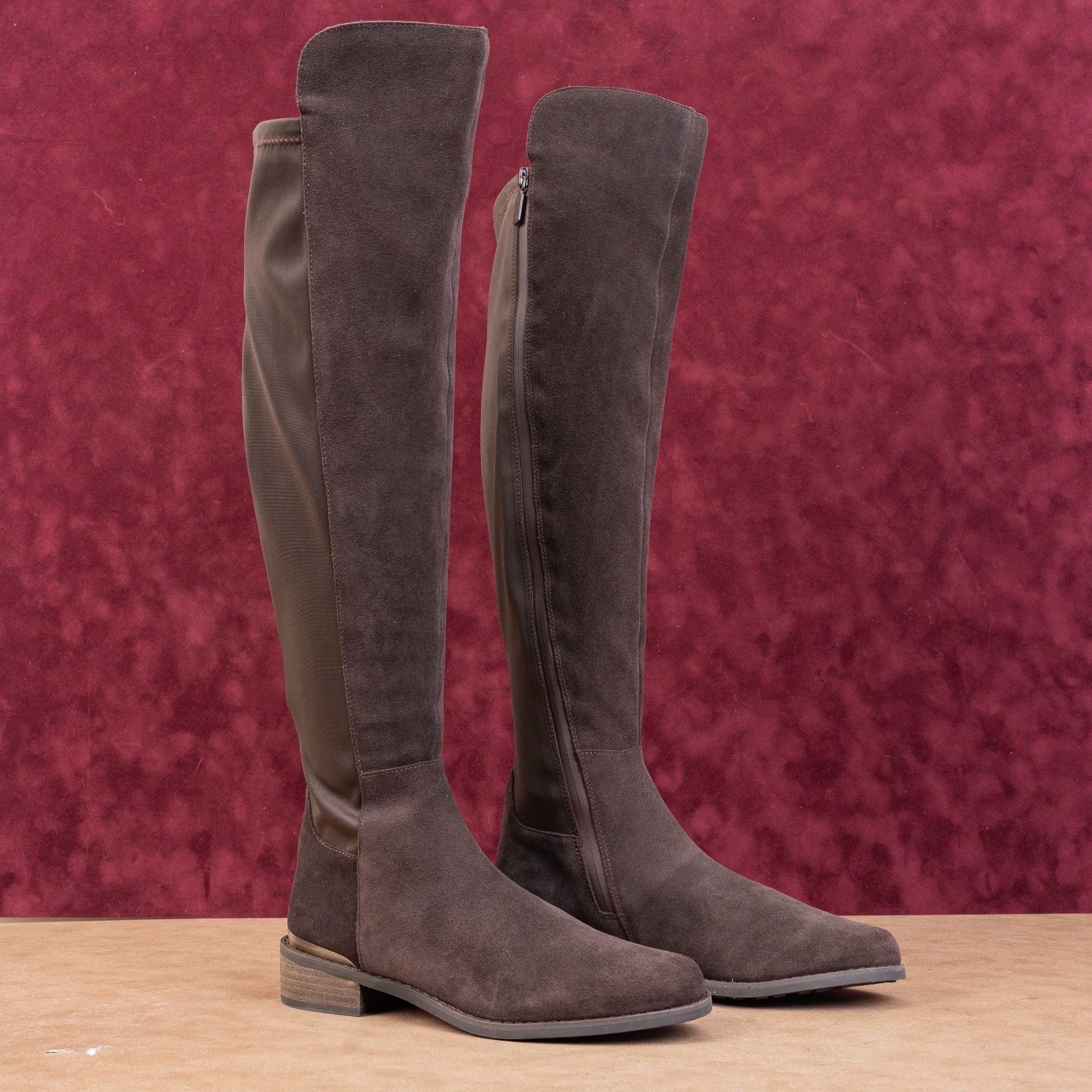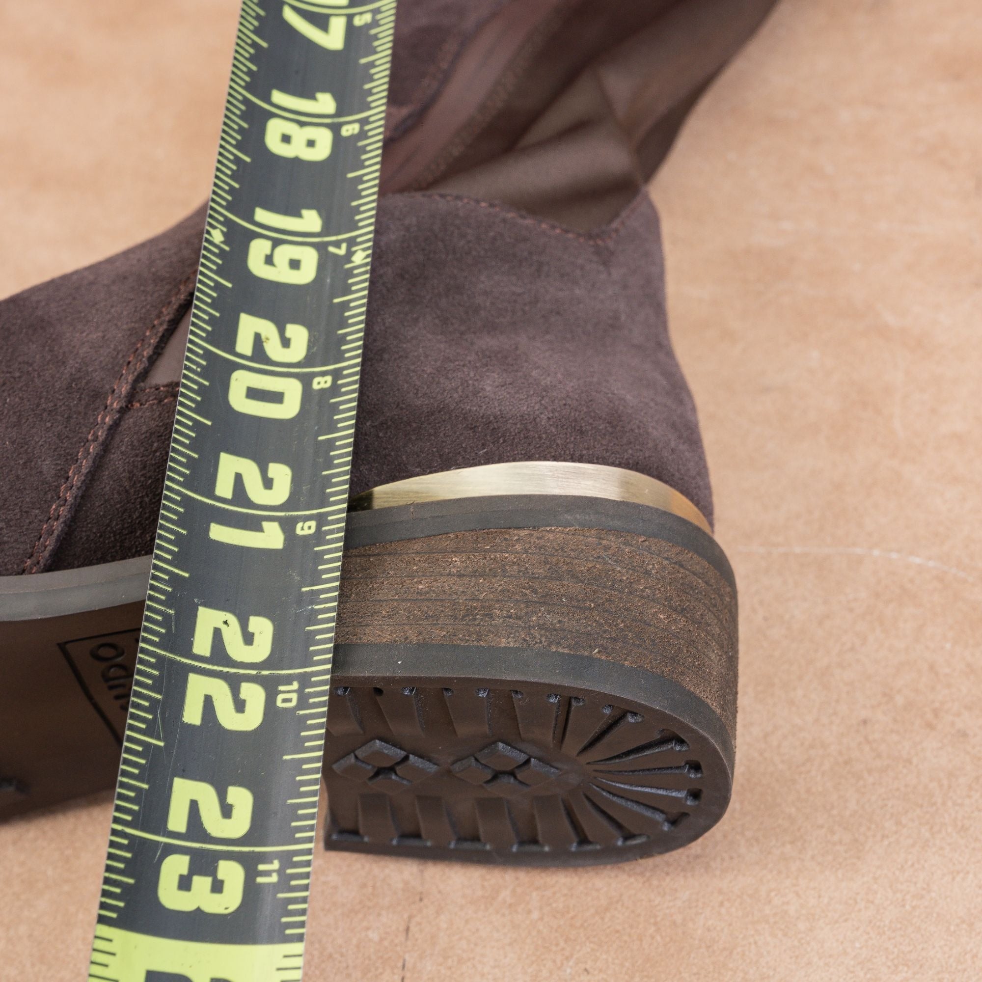 New Condition. No signs of wear on the soles. Never Worn. Made in China. Model # Valina. Retail $250. Suede Upper, Fabric Lining and Rubber Soles. Side zipper style for easy on and off. Please check photos carefully for more information and details. SKU11741
