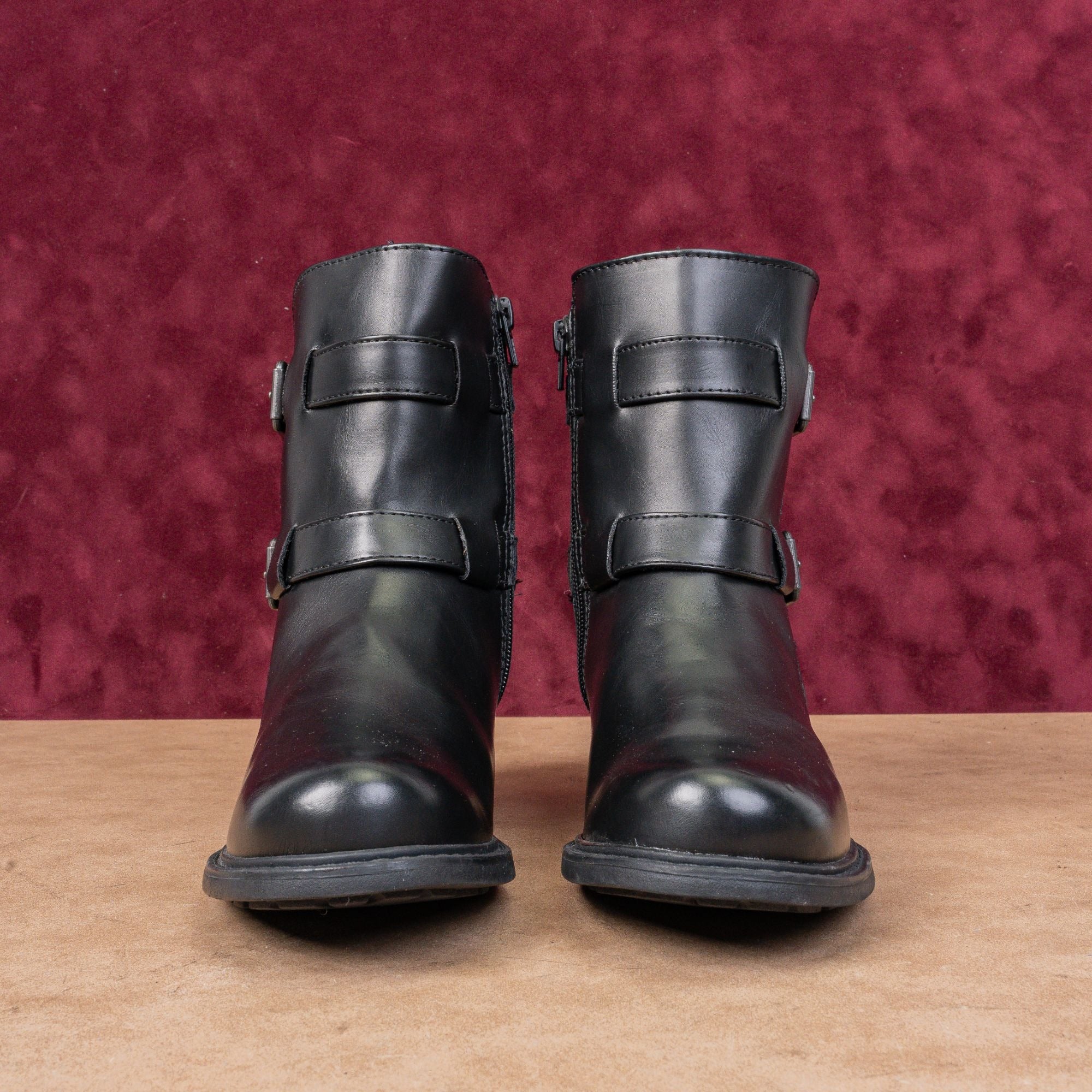 The design is inspired by classic motorcycle boots, likely featuring buckle strap accents and a durable, traction-ready outsole.
