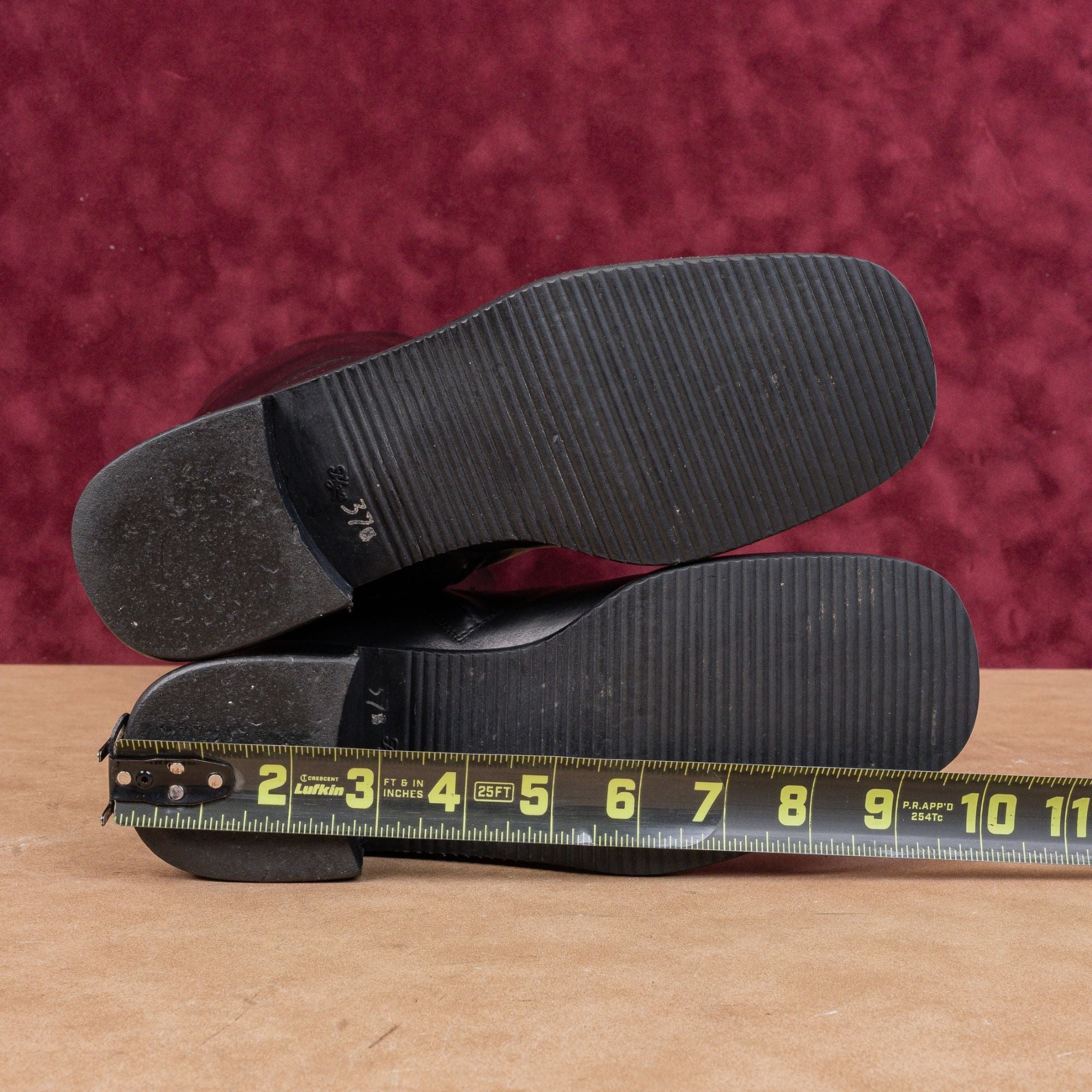 Crafted from durable, smooth black leather, these boots are defined by their sharp, authentic square toe—a hallmark of 90s/Y2K design that is currently having a major resurgence. The clean, knee-high silhouette is finished with a full-length side zipper for effortless wear.