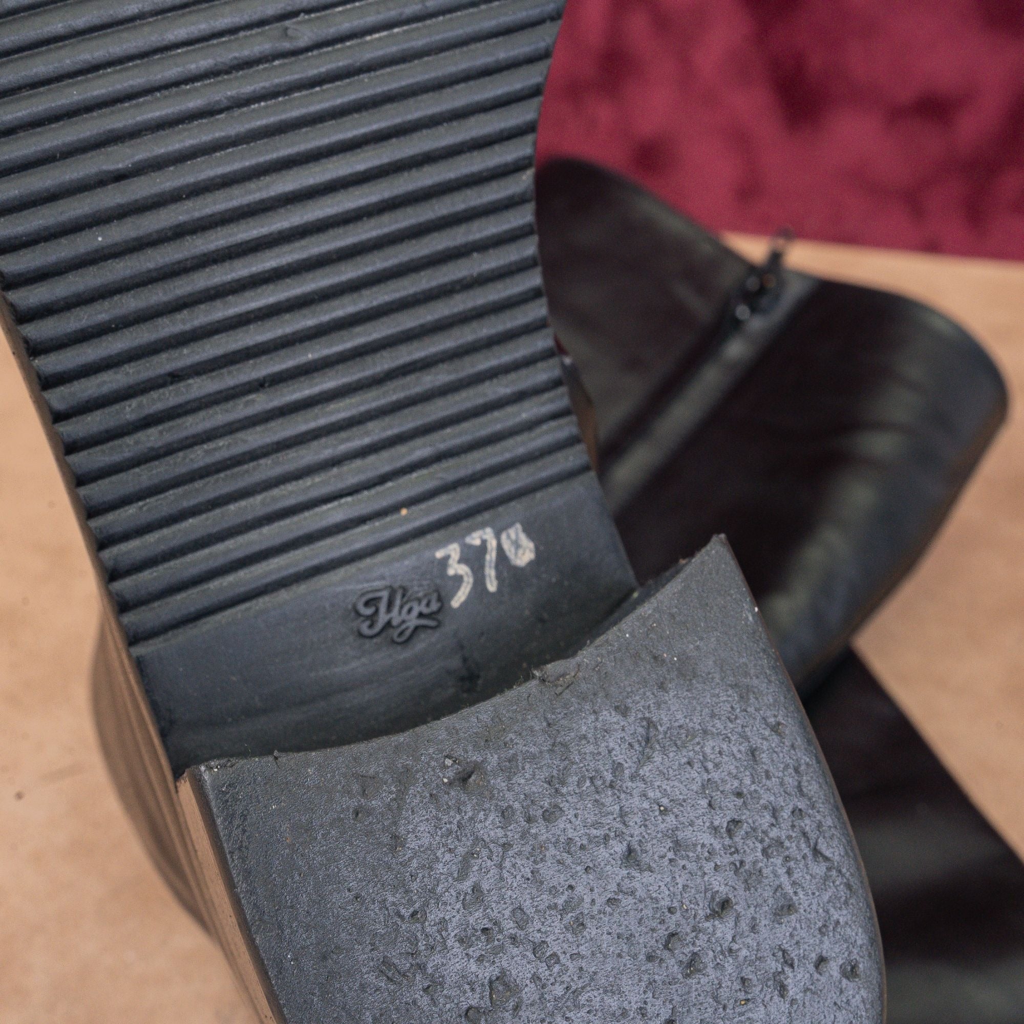 Excellent Condition. Minimal signs of wear on the soles. Pre-loved. Made in Bulgaria. Retail $250. Leather Upper, Leather Lining and Rubber soles. Side zipper style for easy on and off. Please check photos carefully for more information and details. SKU11496
