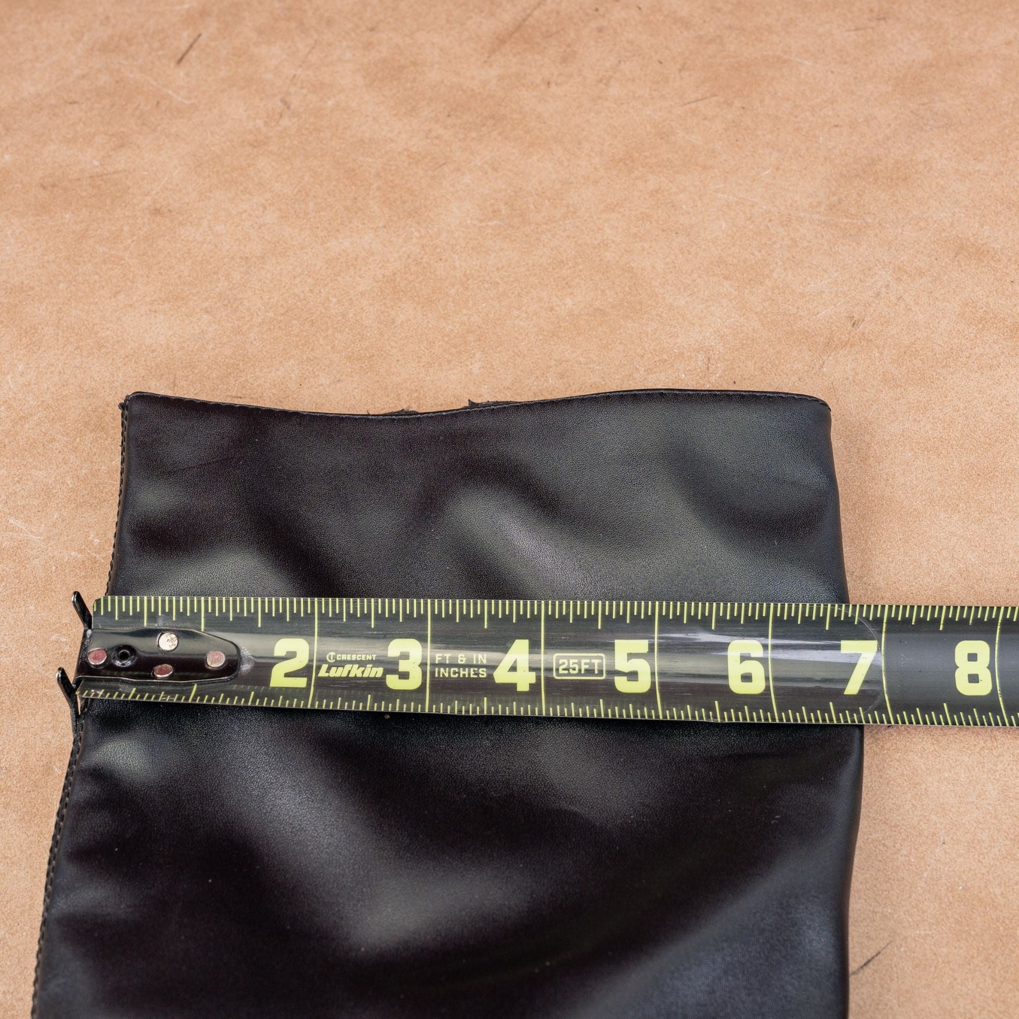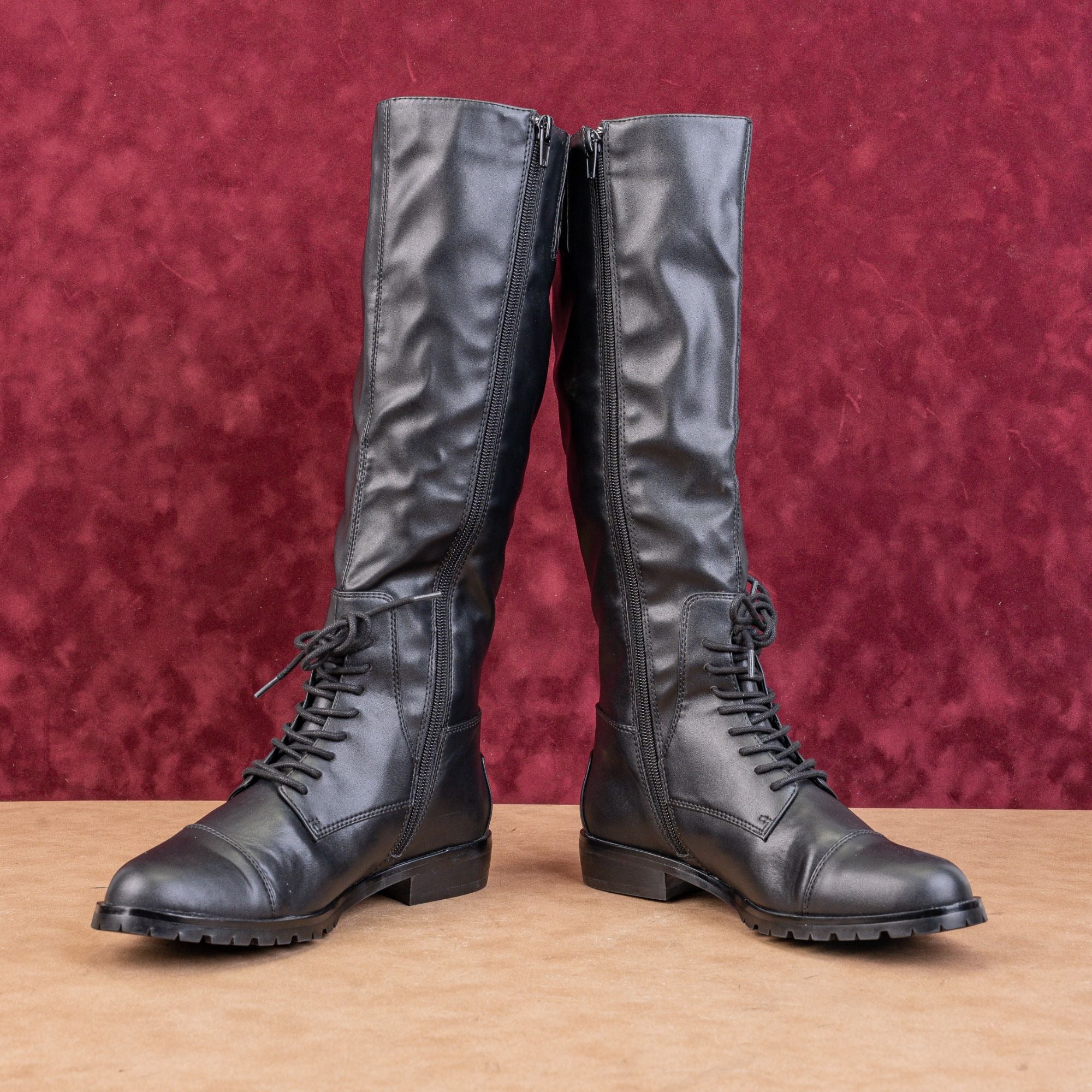 Crafted from high-quality, "Midnight Black" vegan-friendly faux leather, these boots feature a structured knee-high shaft and a refined almond toe.