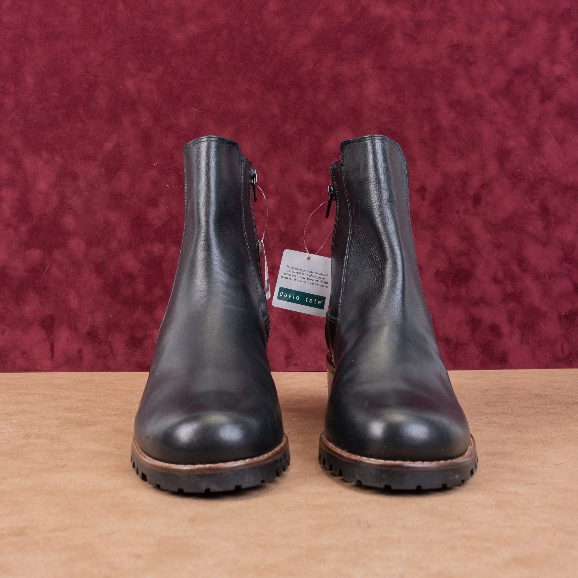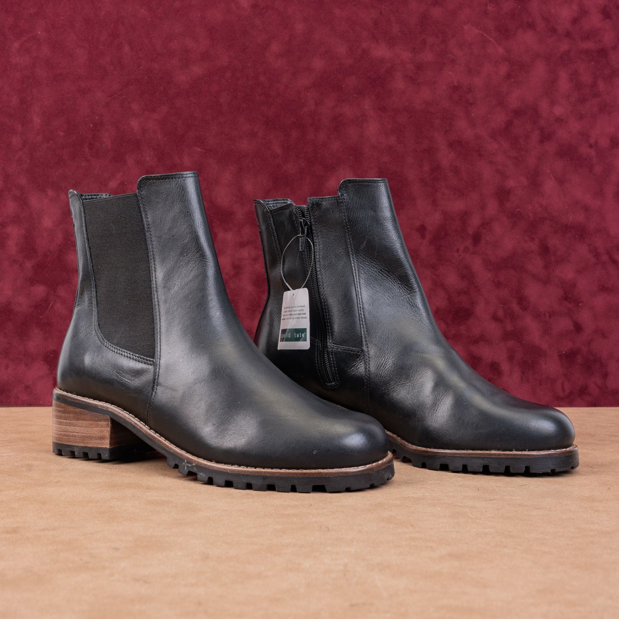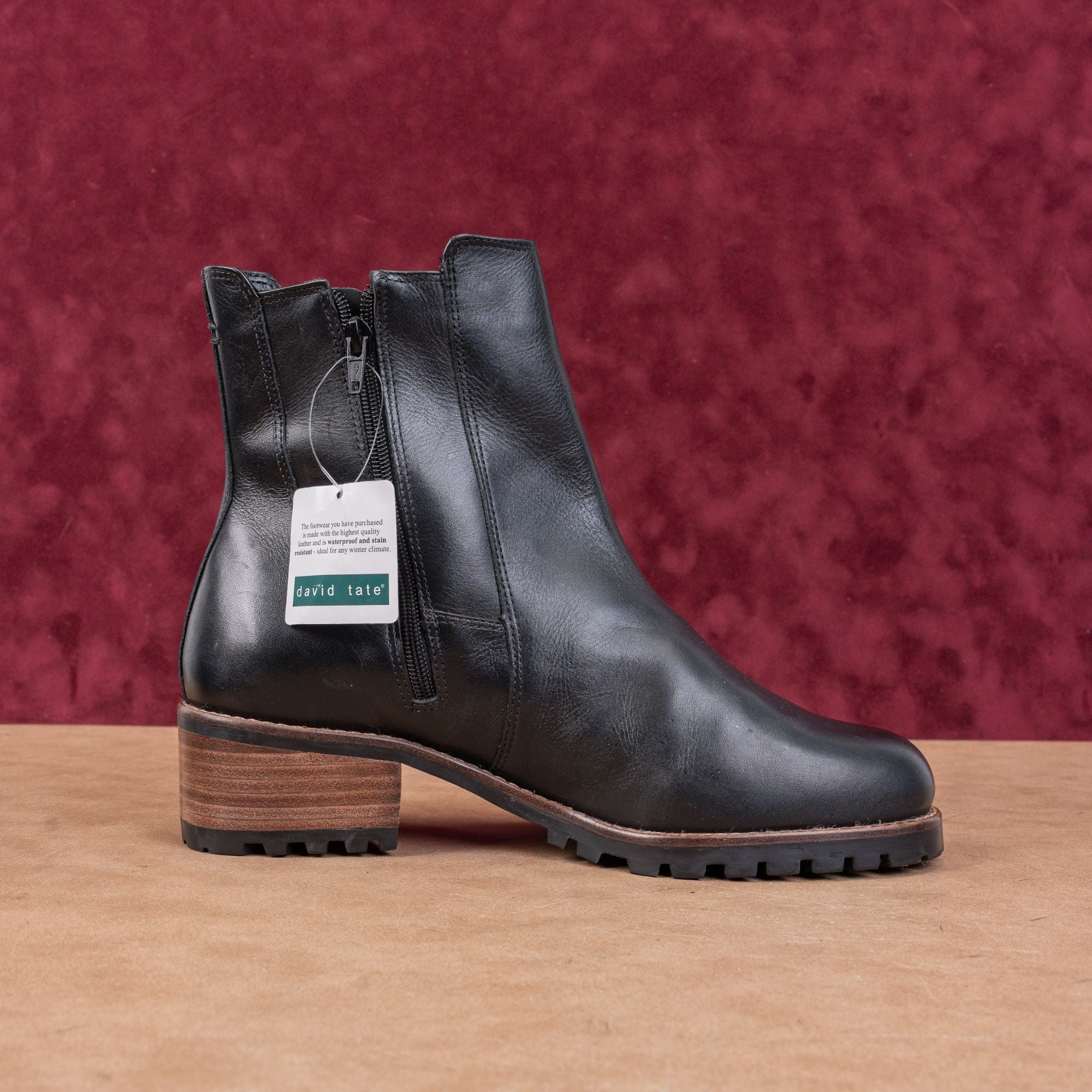 crafted from soft, premium black calfskin leather and features a sleek side zip. Enjoy all-day comfort, sophisticated style, and guaranteed protection from the elements.