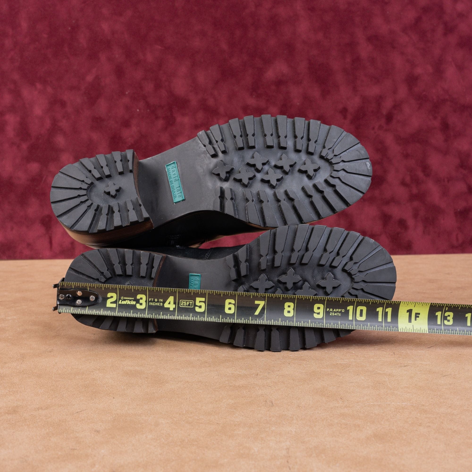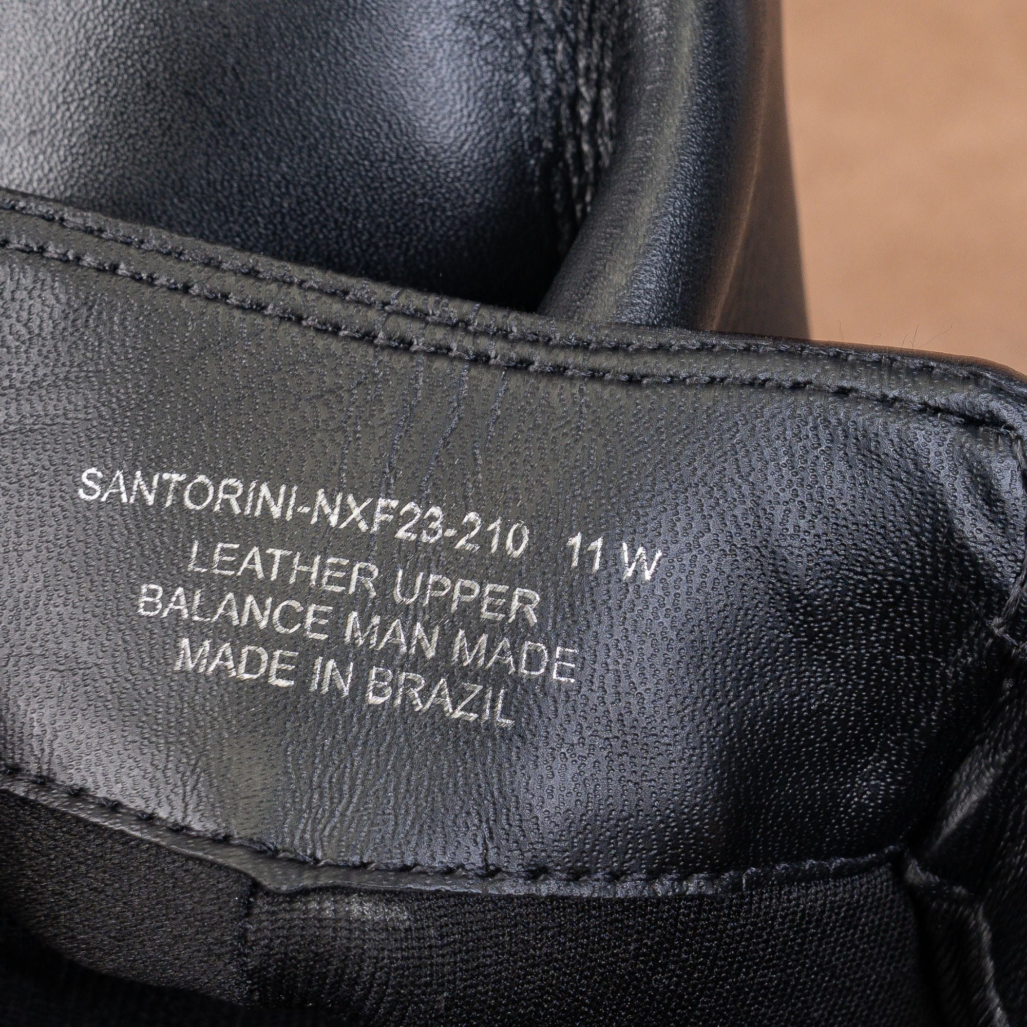 New Condition. No signs of wear on the soles. Never Worn. Made in China. Model # Santorini. Retail $249. Leather Upper, Fabric Lining and Rubber soles. Side zipper style for easy on and off. Round Toe.