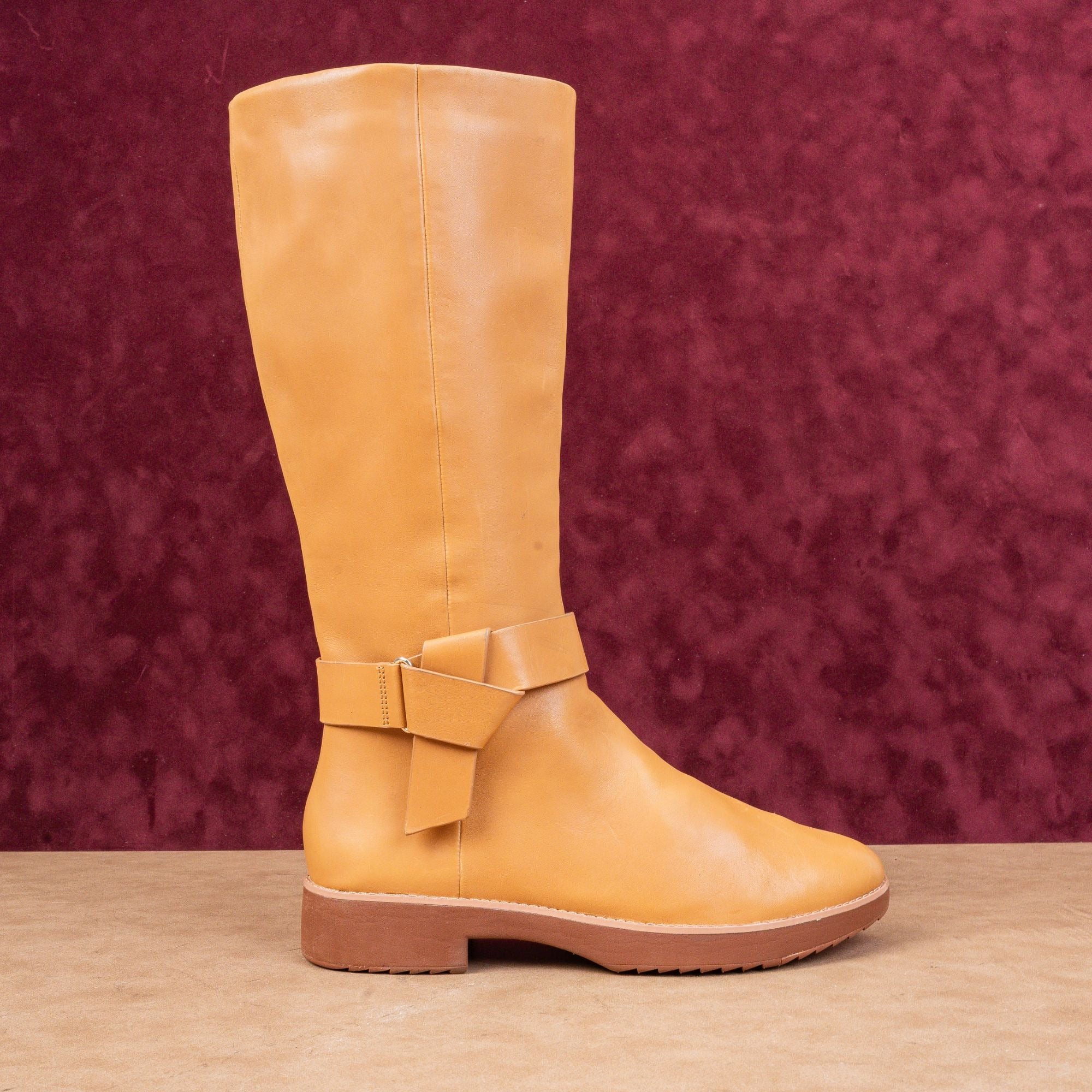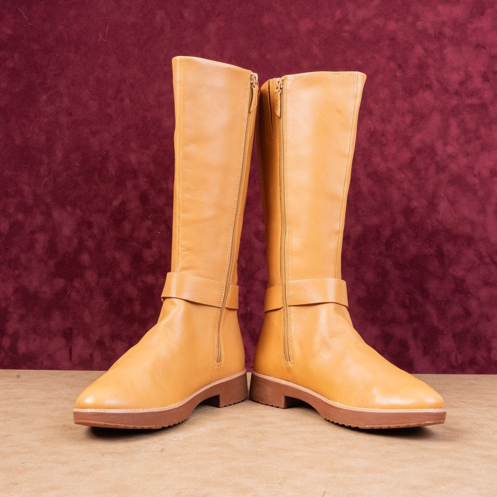 Crafted from rich, mustard-tan leather, this boot features a stylish folded-knot detail and a full-length zip. Built on the legendary, all-day cushioning Microwobbleboard™ midsole.