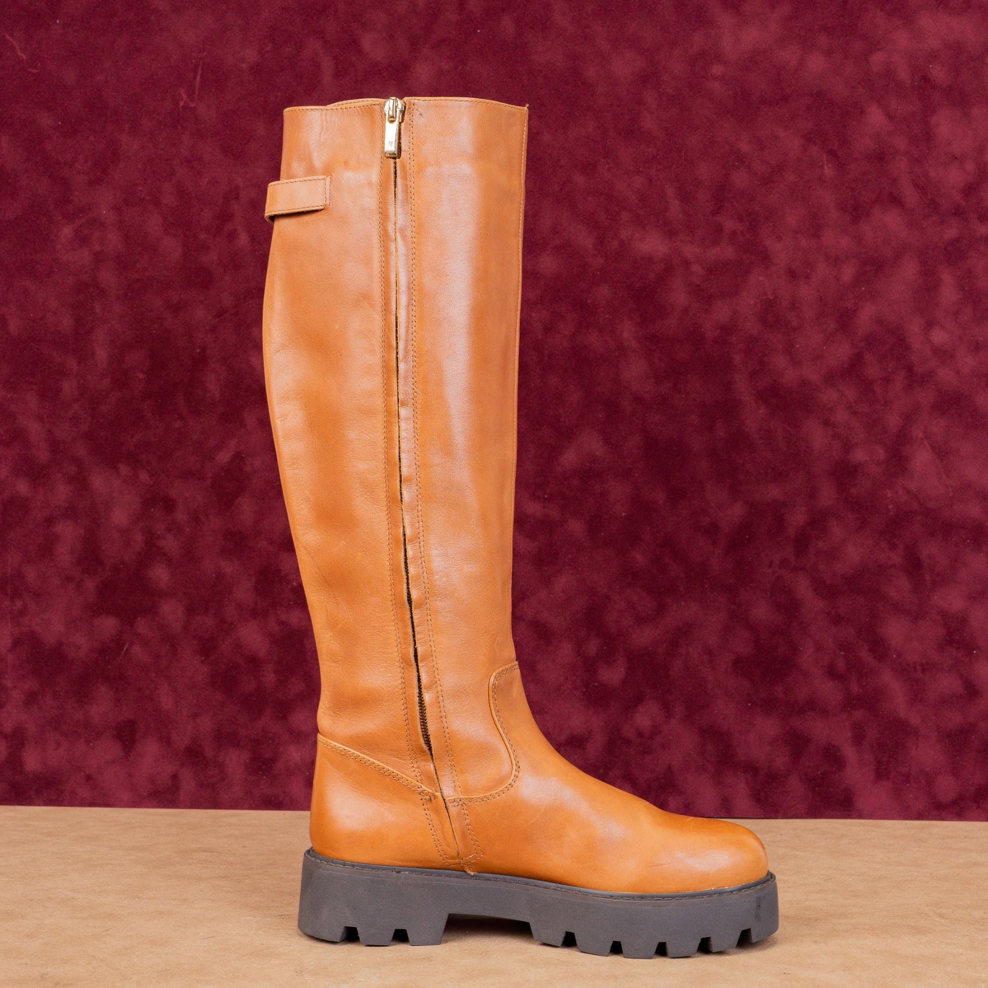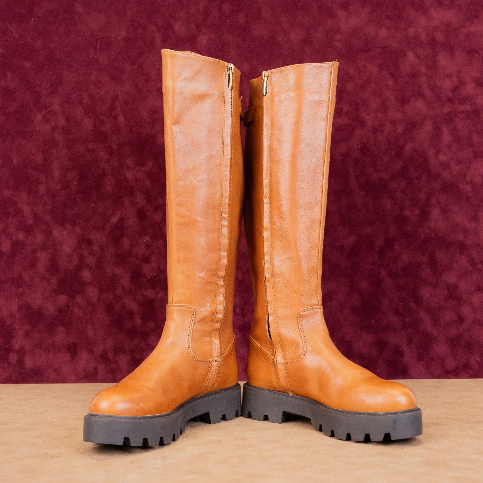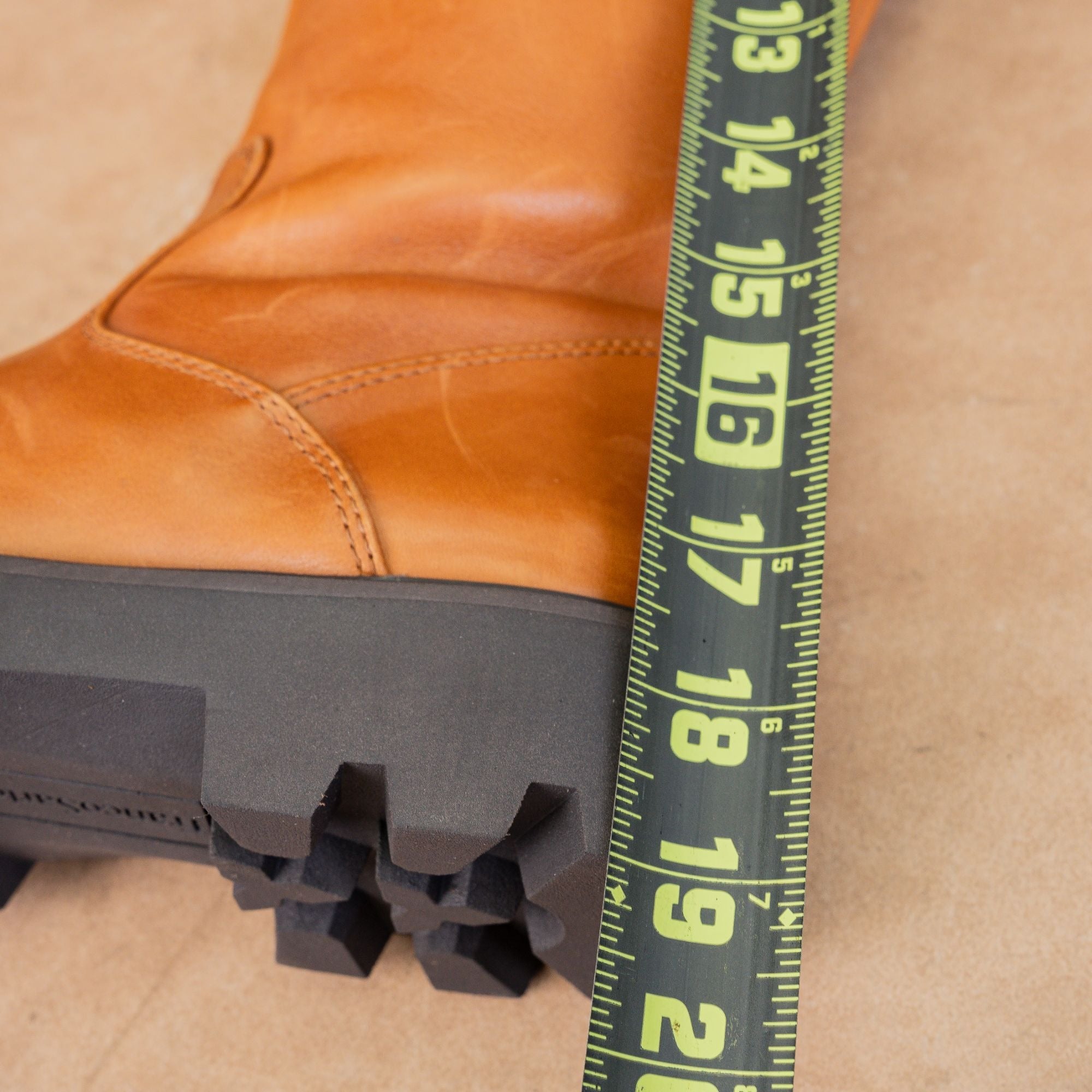 New Condition. No signs of wear on the soles. Never-Worn, Model #L-Balin. Wide Calf Retail $185. Made in China. Leather Upper, Fabric Lining and Lug Rubber soles. Side zipper closure for easy on and off. Round Toe. Please check photos carefully for more information and details. SKU 11454