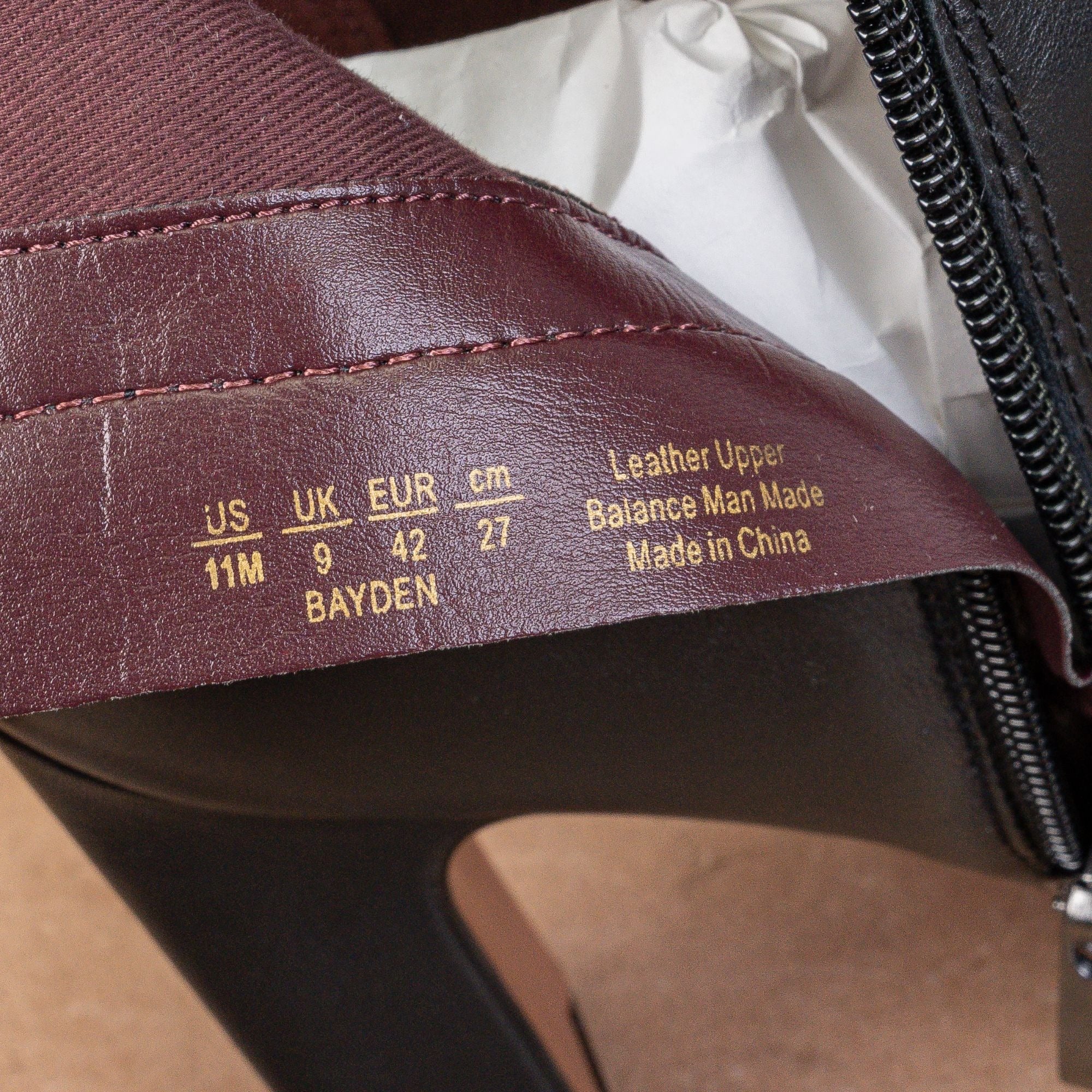 New Condition. No signs of wear on the soles. Never Worn. Made in China. Model # Bayden. Retail $129. Leather Upper, Fabric Lining and Rubber Soles. Side zipper style for easy on and off. Please check photos carefully for more information and details. SKU11609