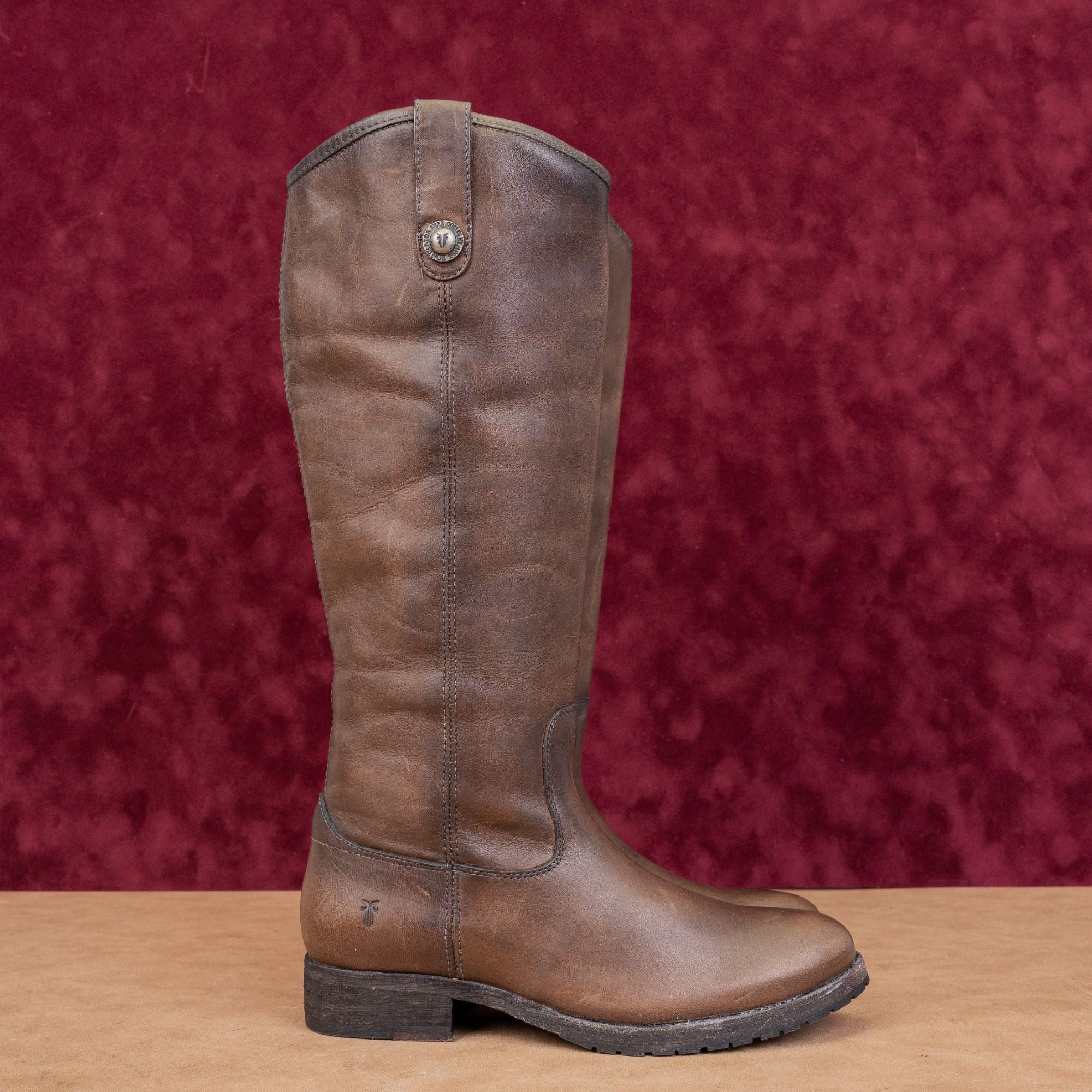 The specific boot you are looking for, the Frye Melissa Button Lug in Dark Brown Leather and size 6.5, appears to be a style from a previous season and is difficult to find new from major retailers.