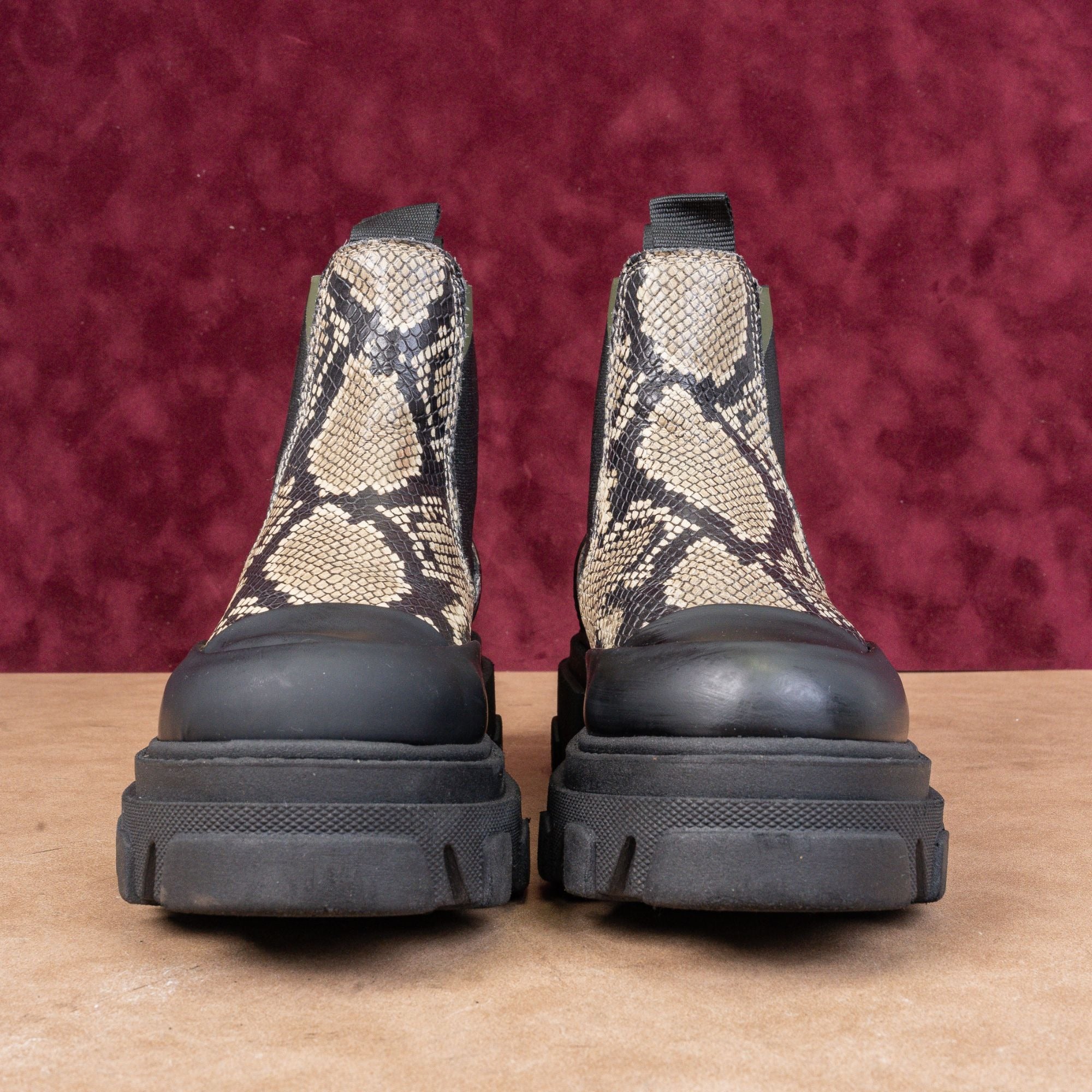 Ganni Women Chelsea Platform Cleated Lug Snake Print Leather Boots Sz 6US EUR37