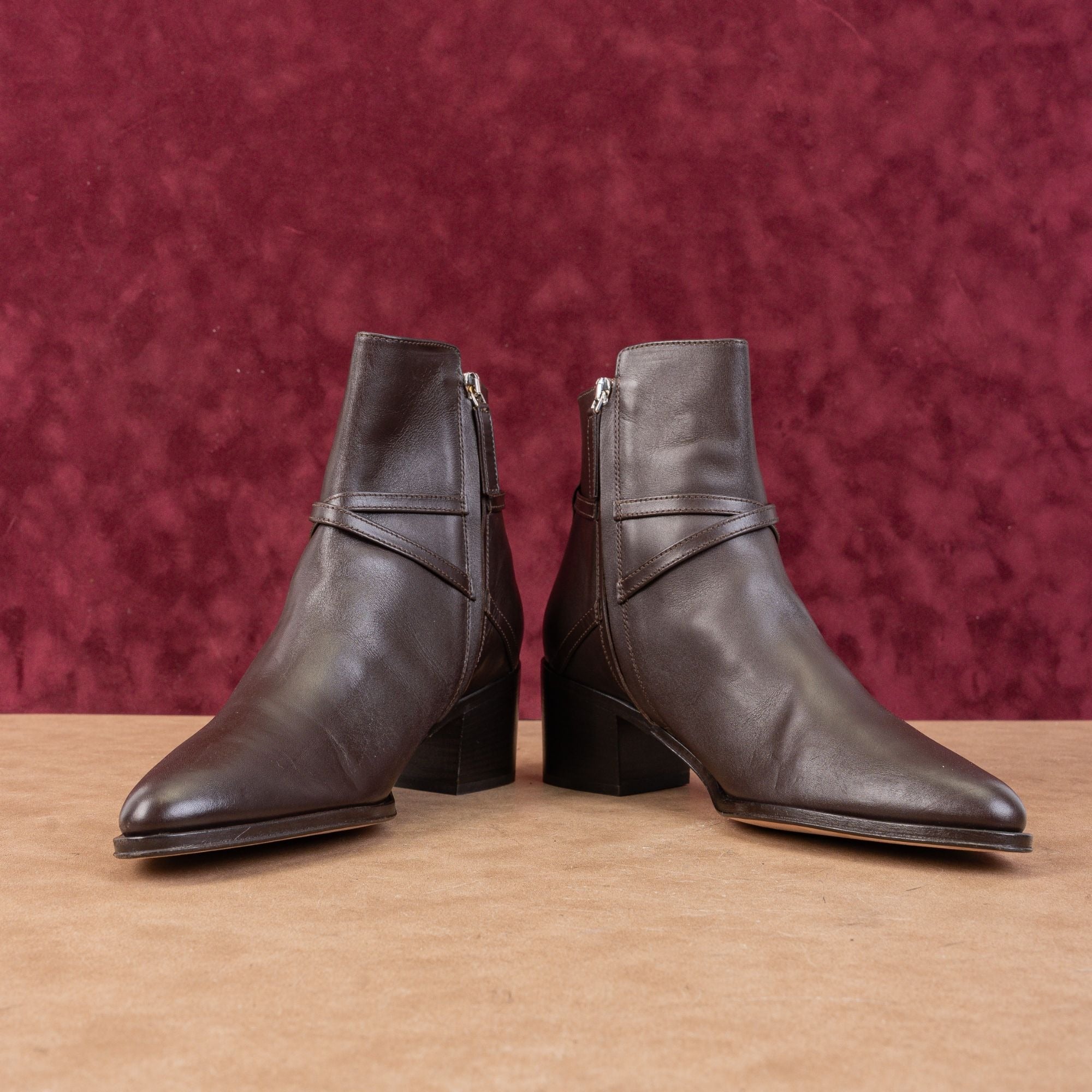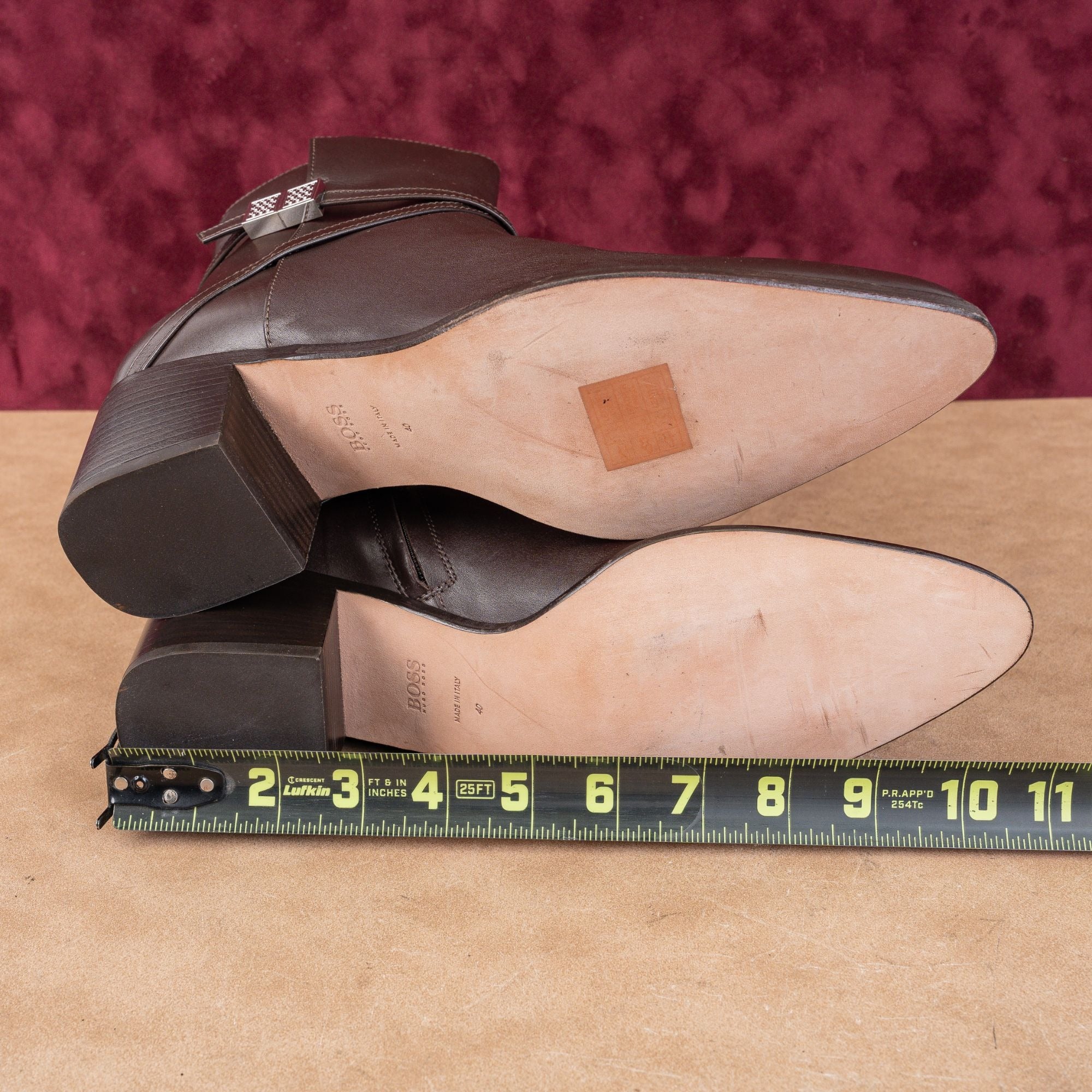 New Condition. No signs of wear on the soles. Never-Worn. Model #Silver Hardware. Retail $550. Leather Upper, Leather Lining and Leather soles. Side zipper closure for easy on and off. Almond toe Please check photos carefully for more information and details. SKU11821