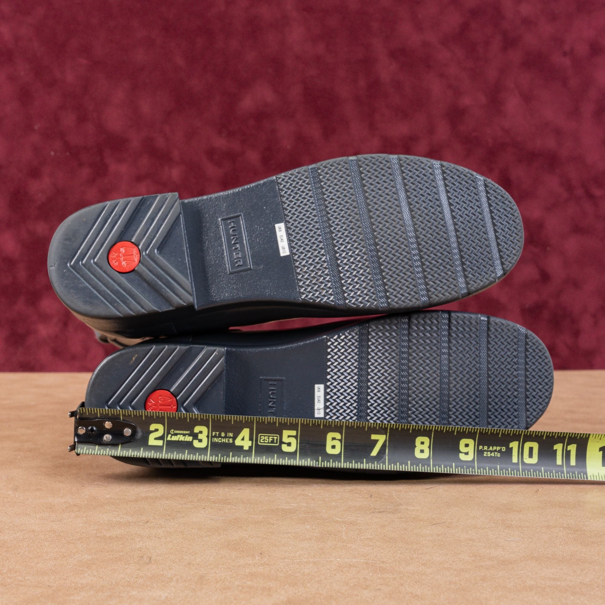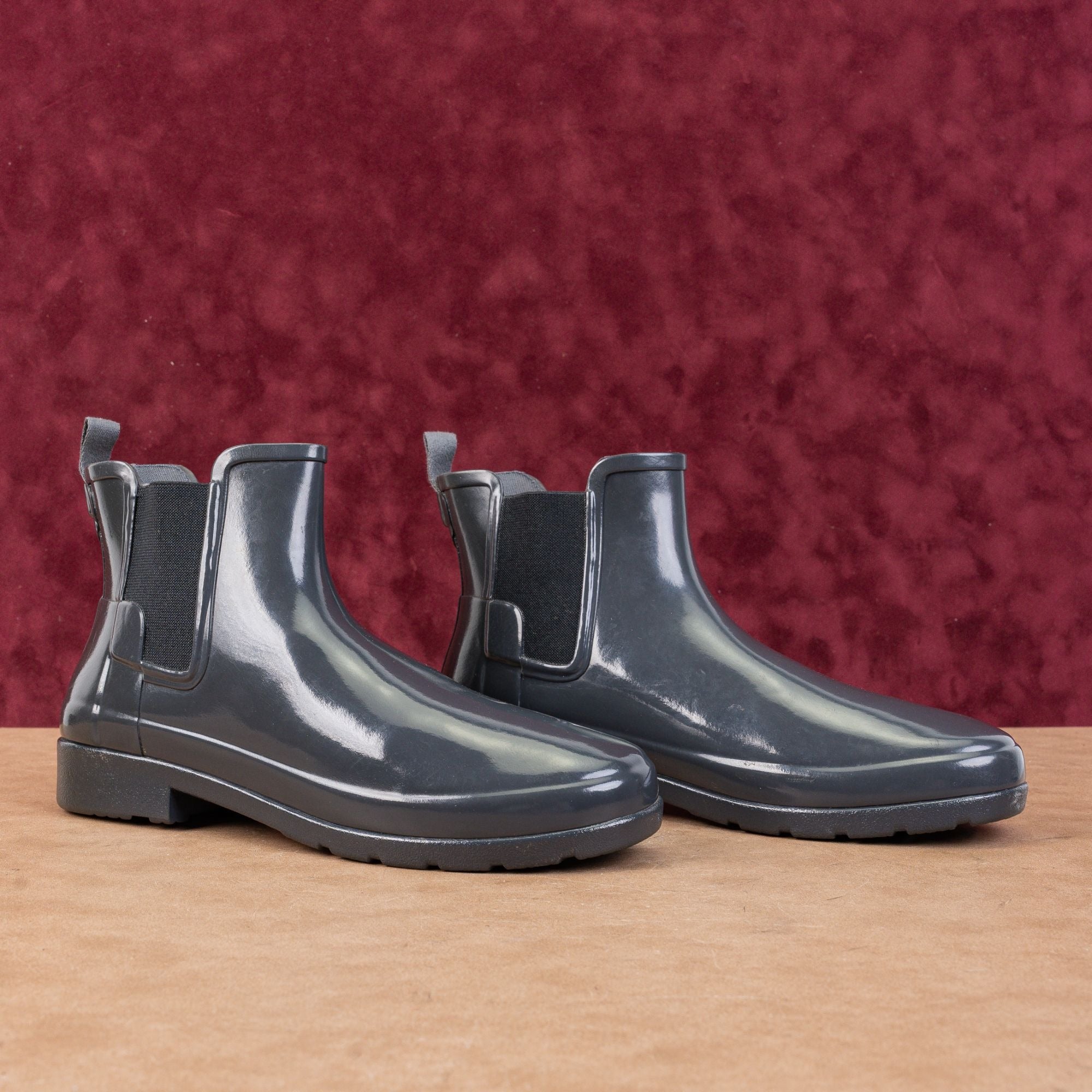 The "Refined Slim" silhouette offers a more contoured, elegant fit than the classic Hunter boot, making them perfect for city commuting and stylish rainy-day outfits.