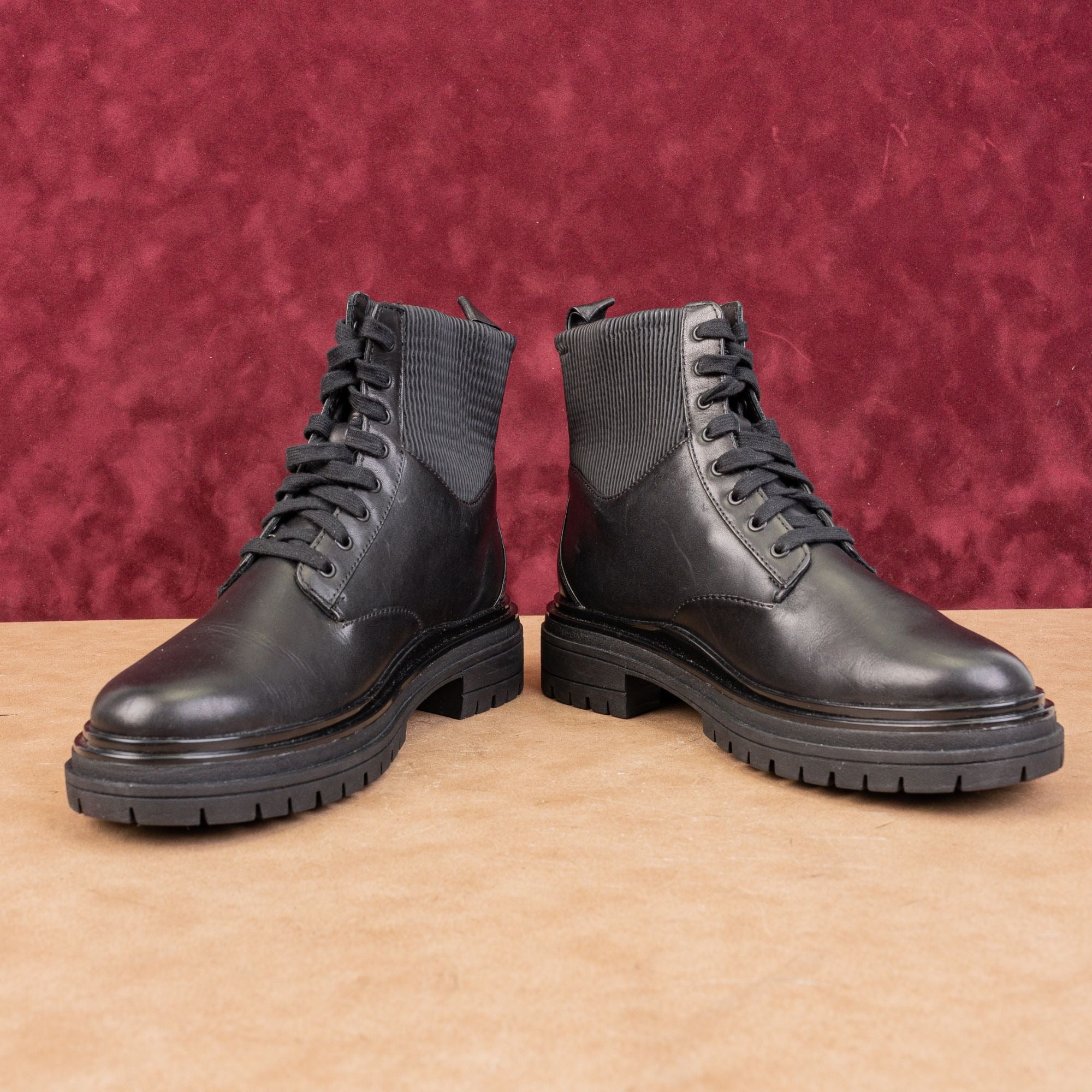 Crafted from supple, full-grain black leather with tonal knit or elastic gore accents, the Gianna offers a flexible, custom-feeling fit that traditional stiff combat boots can’t match.