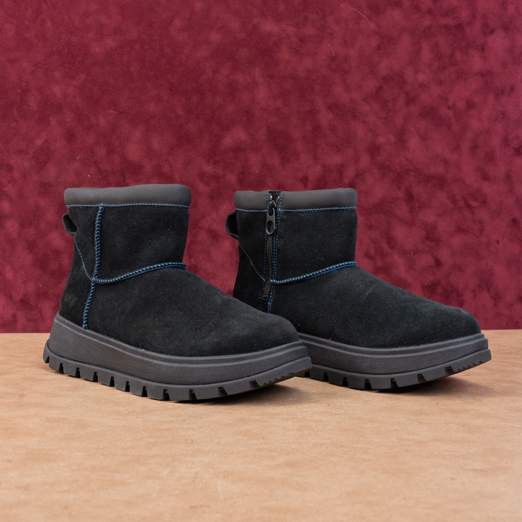 The Koolaburra Ultra Mini Platform boot is crafted from soft black suede and features a plush faux fur lining. The platform sole elevates your look, blending comfort with the latest fashion trend.