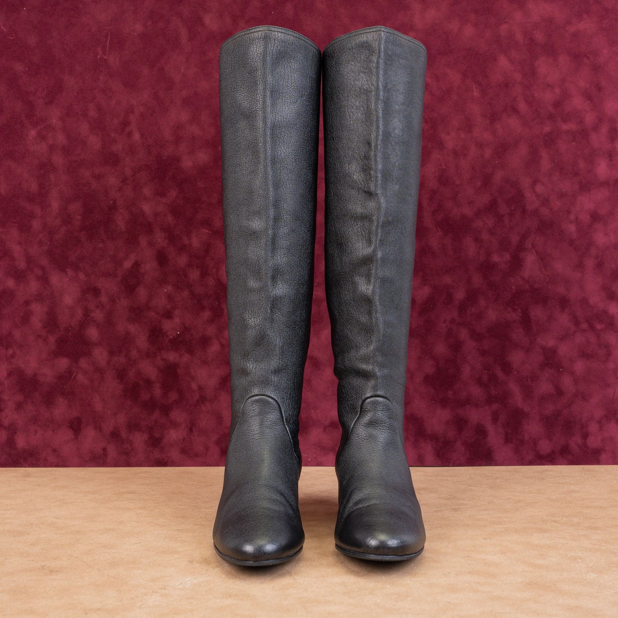 Lanvin Paris Women Black Suede Wedge Slip-on Tall Knee Boots sz 7US EUR 37.5