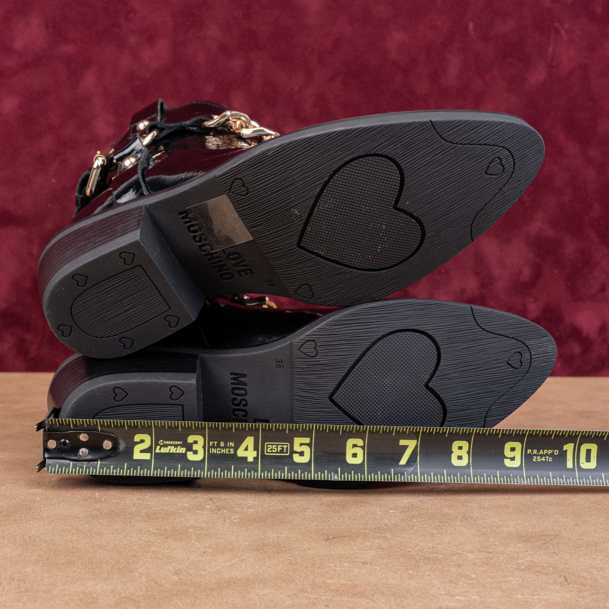 New Condition. No signs of wear on the soles. Never Worn. Model #Western Patent. Retail $435. Patent Upper, Faux Leather Lining and Rubber soles. Slip-on closure for easy on and off. Pointy toe SKU12171