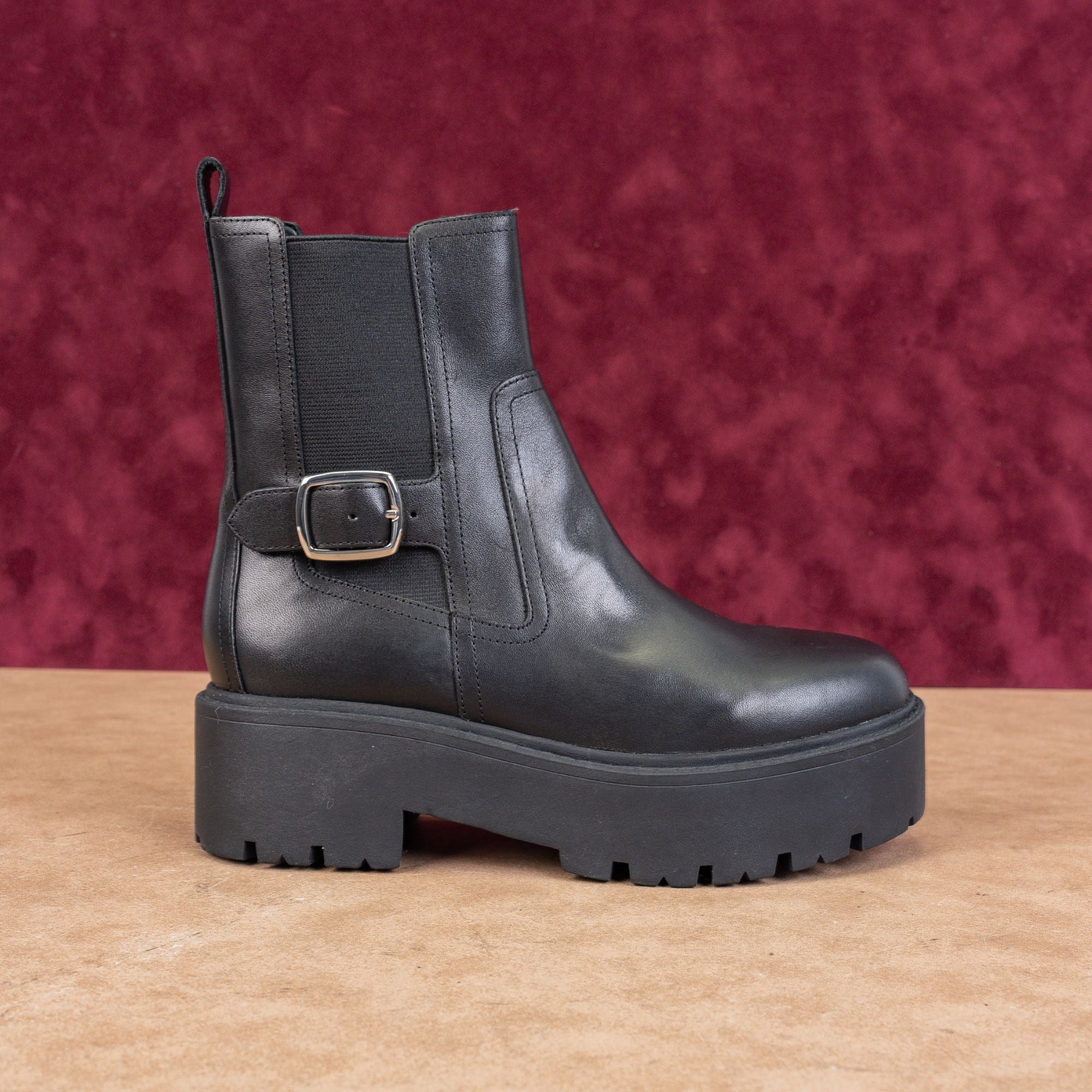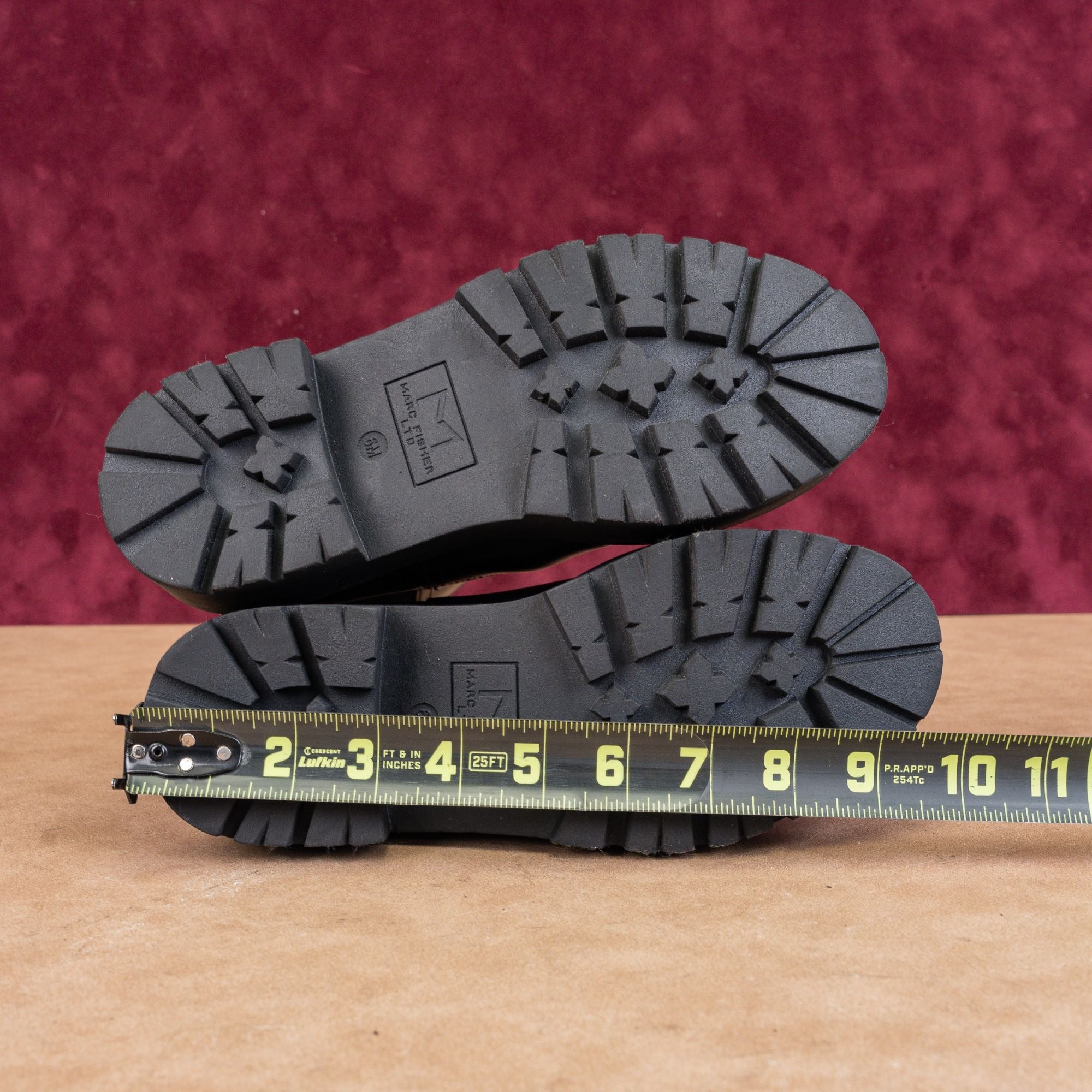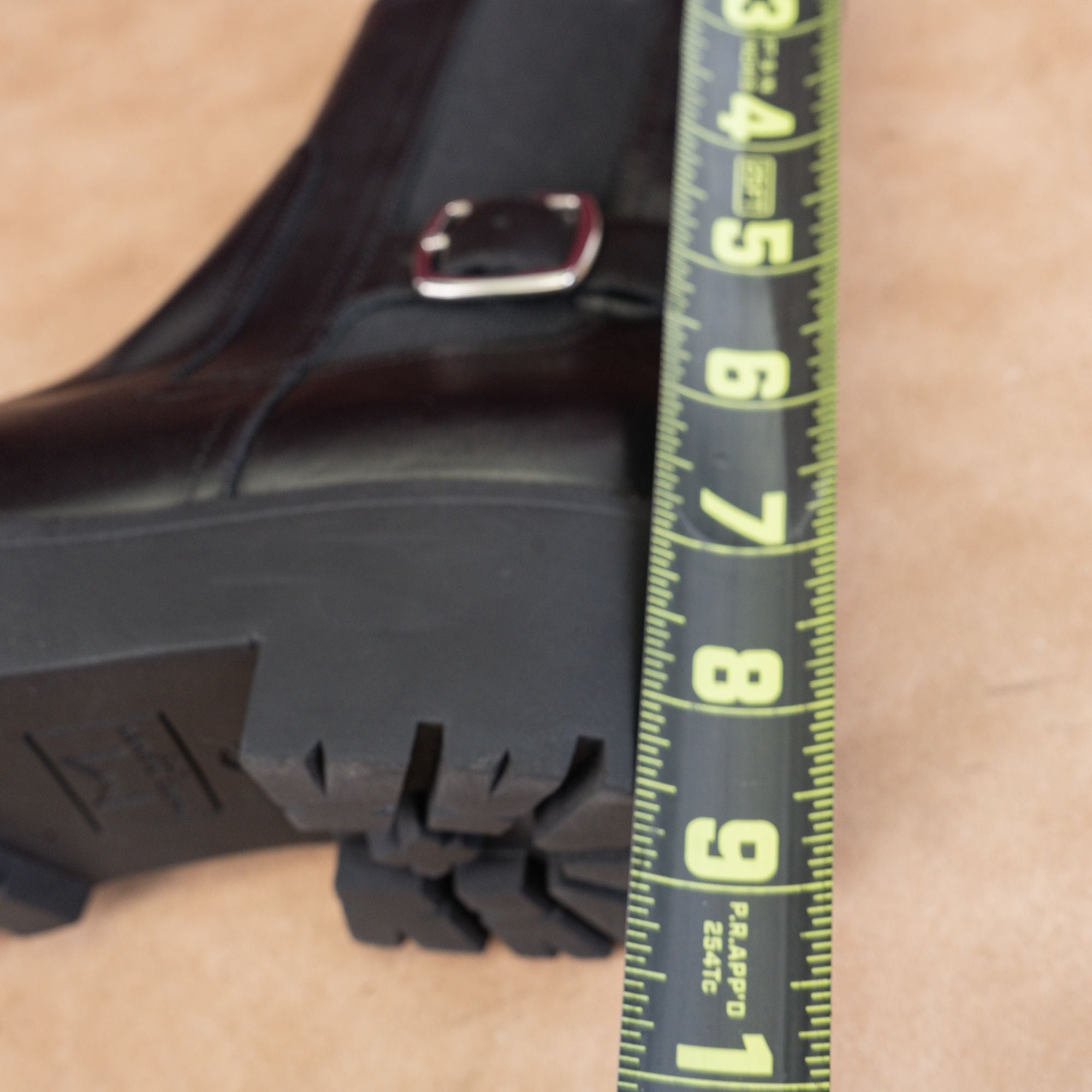 New Condition. No signs of wear on the soles. Never Worn. Made in China. Model # Dacilla. Retail $179. Leather Upper, Fabric Lining and Rubber Soles. Side zipper style for easy on and off. SKU 11418