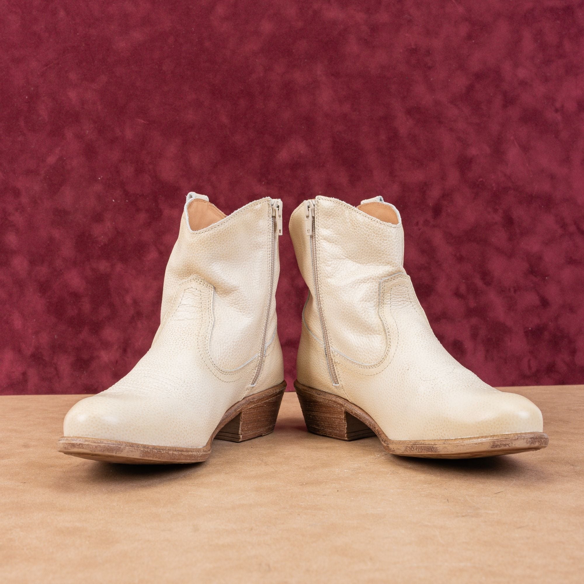 These western-inspired beauties feature a stunning mix of premium burnished leather and textured linen-like fabric panels, creating a unique, lived-in aesthetic.
