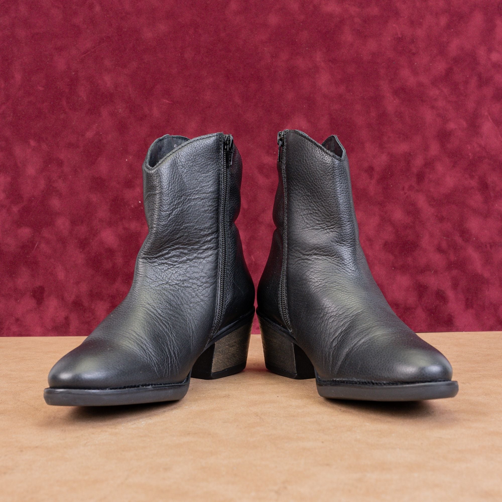 Miz Mooz Women Duart Black Leather Western Cowboy Zip Ankle Boots 9-9.5US EUR40