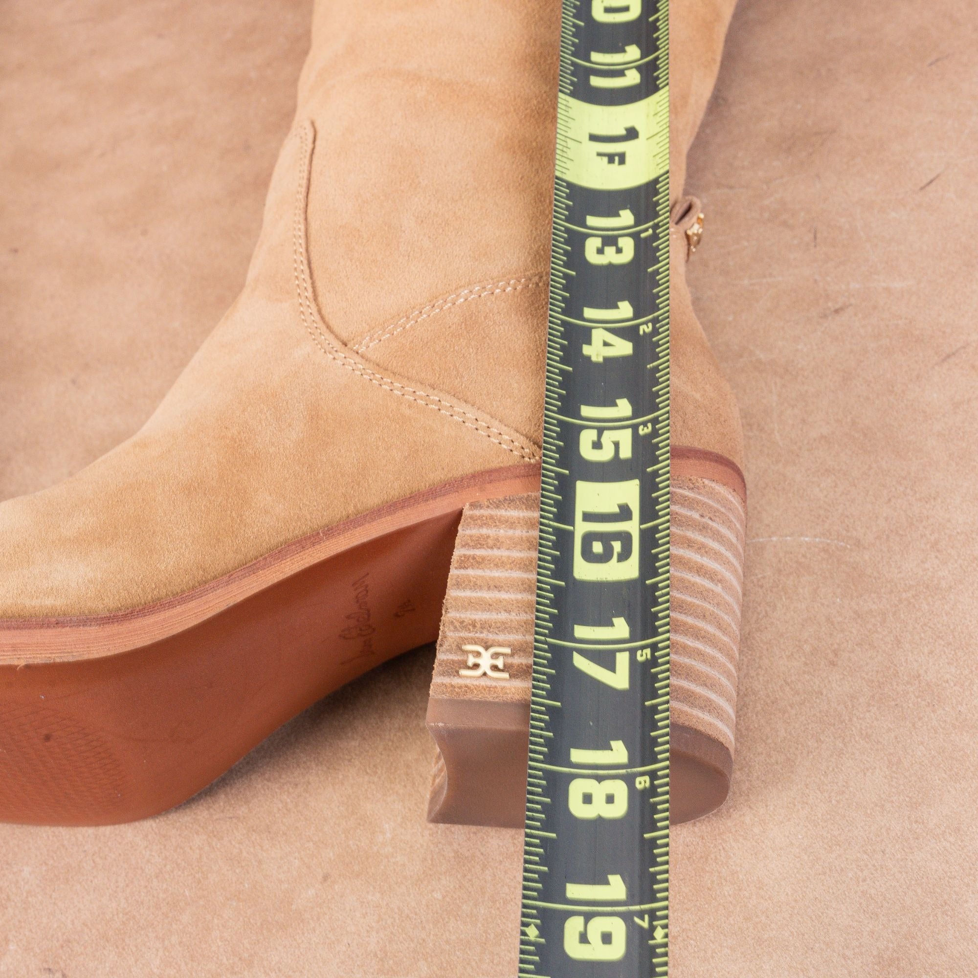 Sam Edelman Women Soyer Caramel Brown Zip Stack Heel Knee Boots sz 7.5