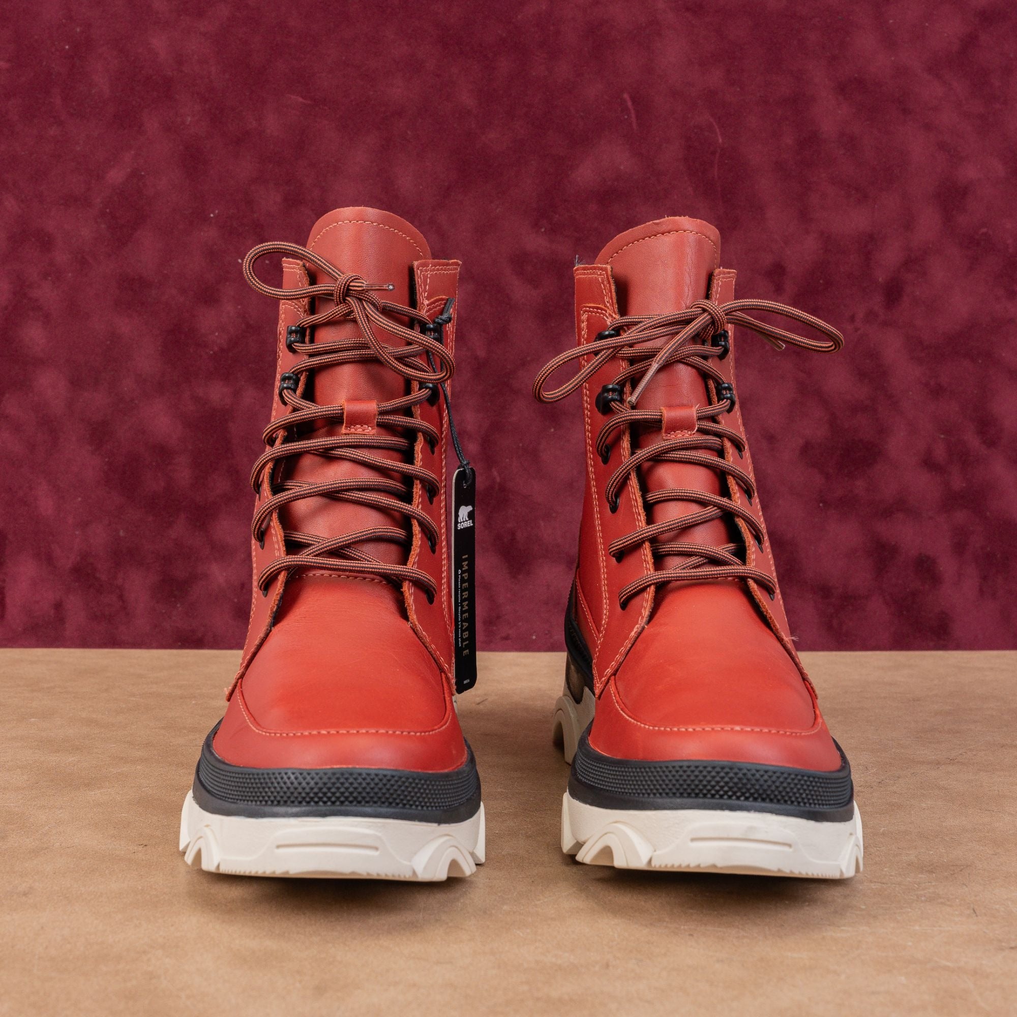 Featuring a vibrant Warp Red waterproof leather upper and an exaggerated, chunky lug sole, the Brex offers a bold, rebellious look while providing the legendary Sorel weather protection.