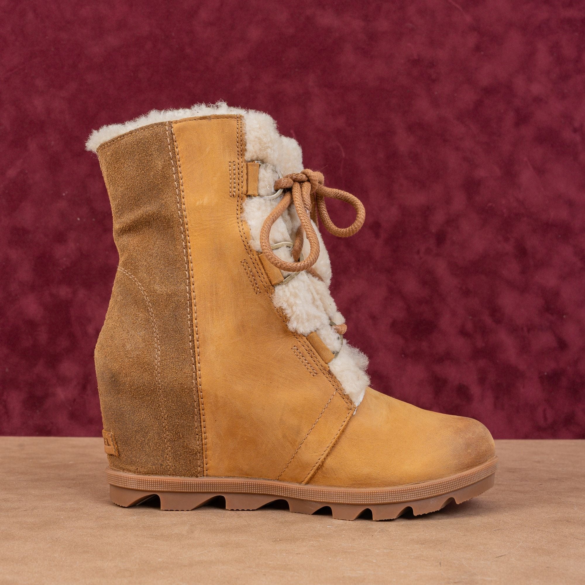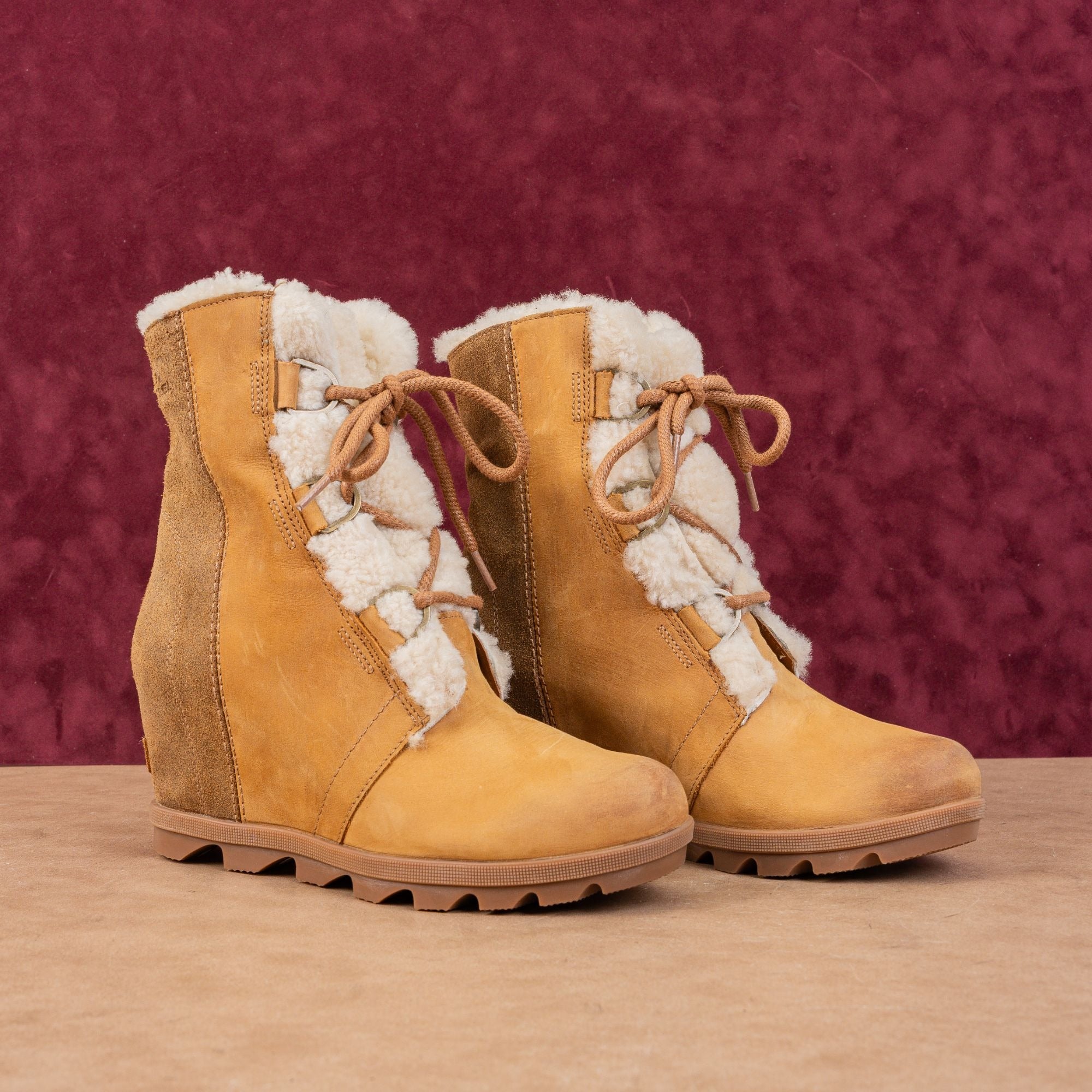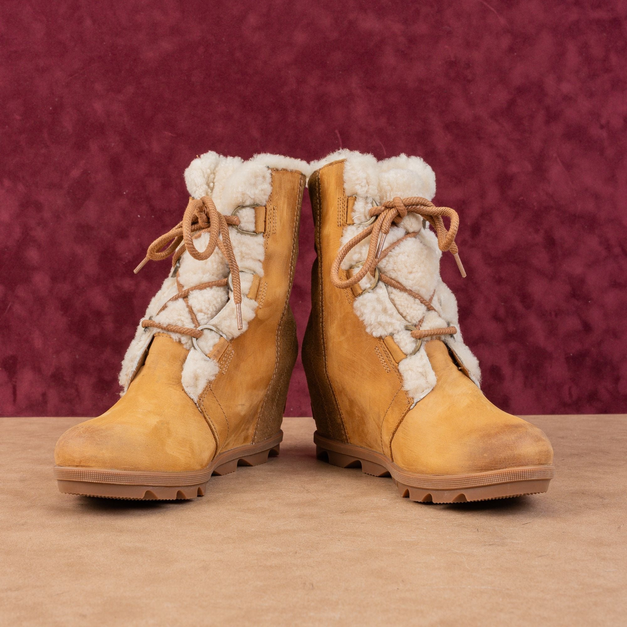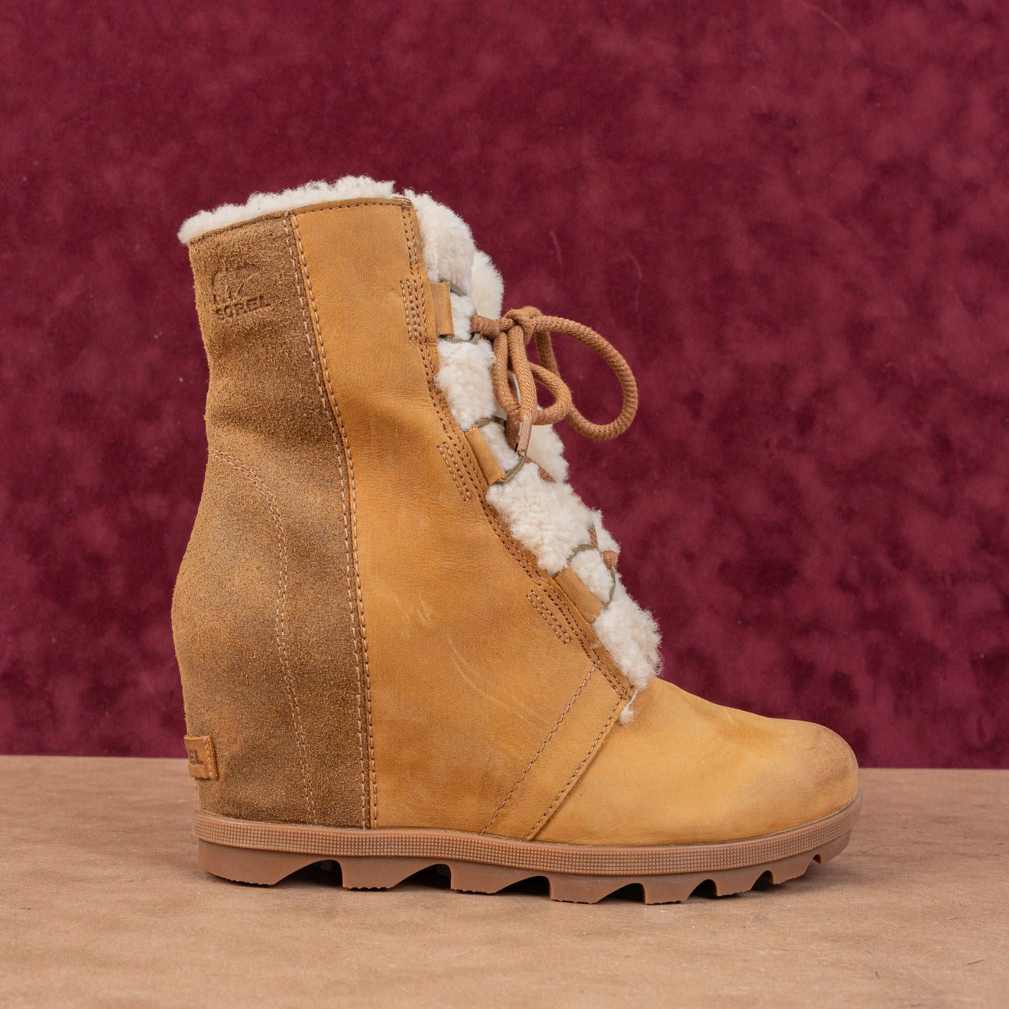 New Condition. No signs of wear on the soles. Never Worn. Made in Vietnam. Model # Joan Of Artic Wedge II. Retail $179. Leather Upper, Fabric Lining and Rubber Soles. Lace-up style for easy on and off. Please check photos carefully for more information and details. SKU11843