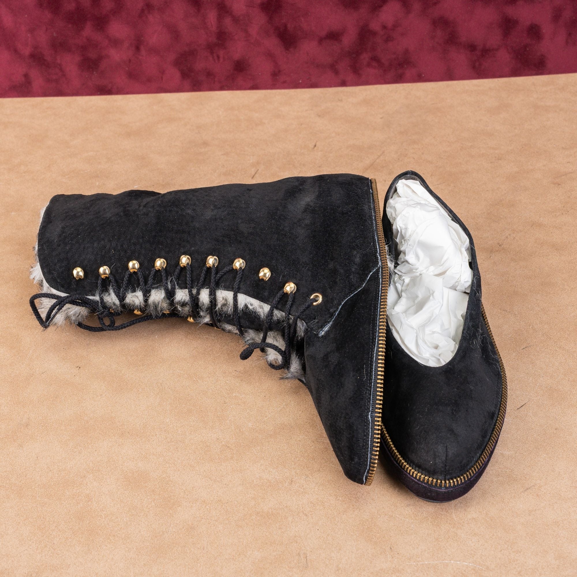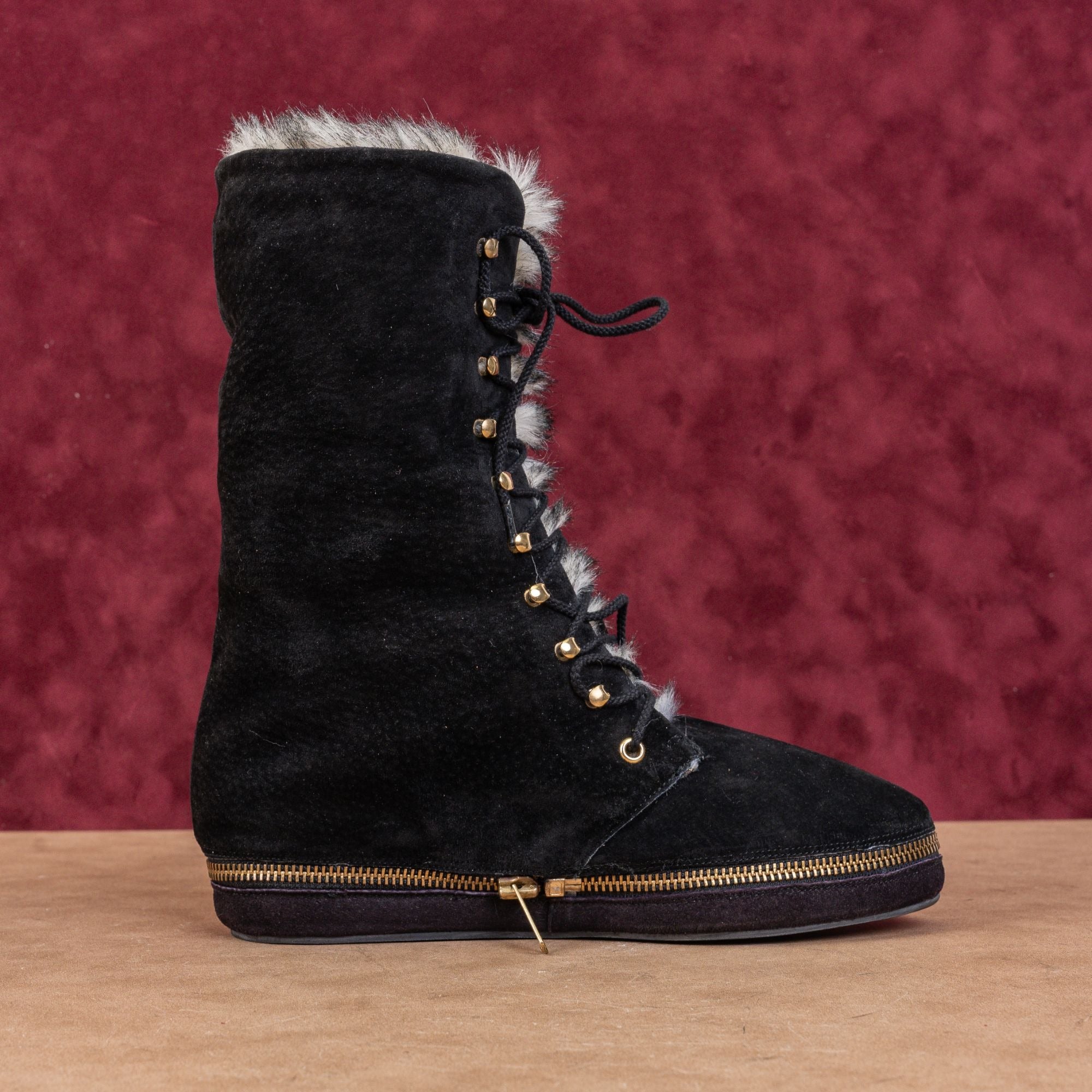 New Condition. No signs of wear on the soles. Never Worn. Made in France. Boot can be detached and converted as loafer by a round zipper. Retail $479. Leather Upper, Fabric Lining and Rubber Soles. Lace-up style for easy on and off. Please check photos carefully for more information and details. SKU11778