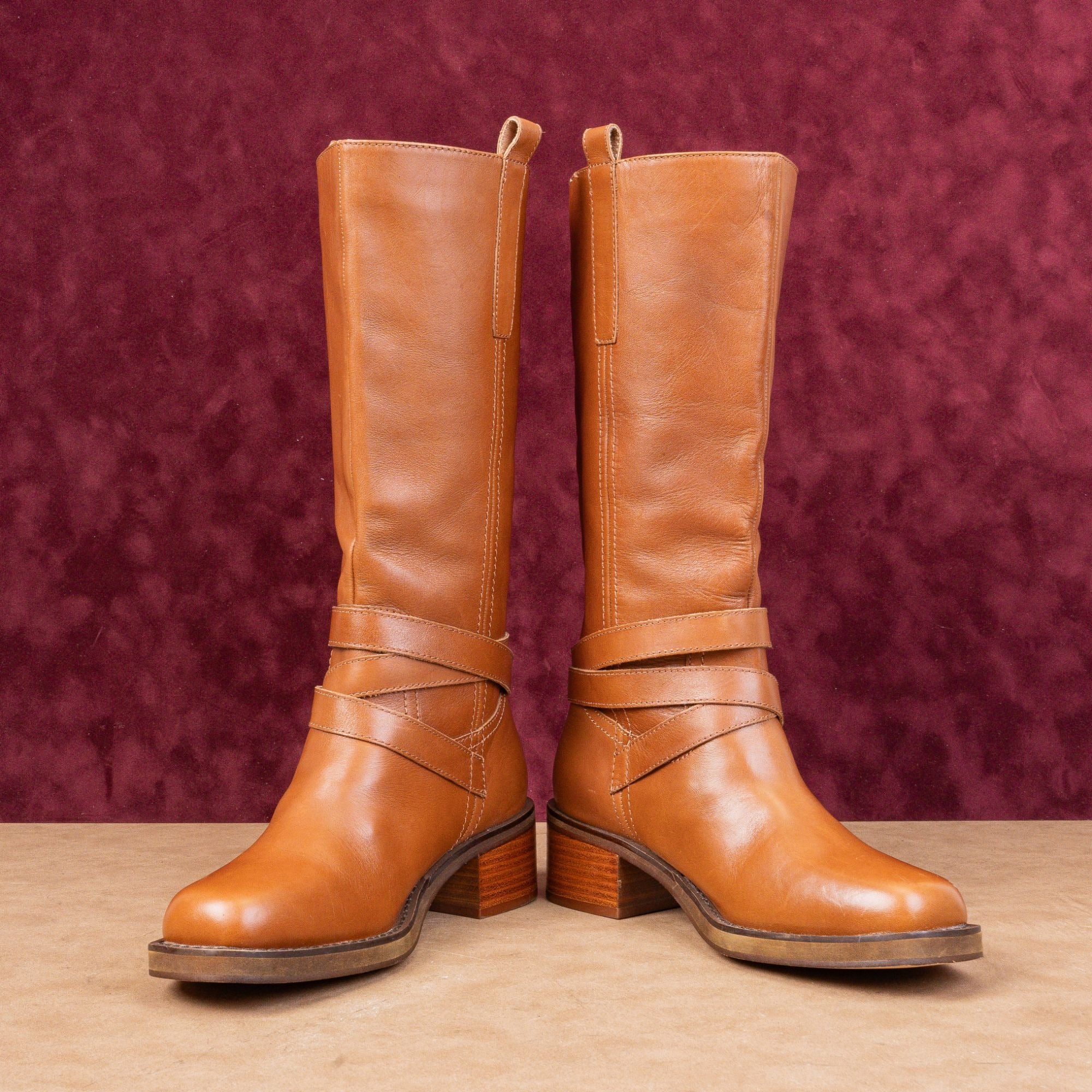 The design is defined by its on-trend chunky block heel and a sturdy sole, giving you a confident lift that's still comfortable for all-day wear. A decorative buckle strap at the ankle adds the perfect amount of biker chic.