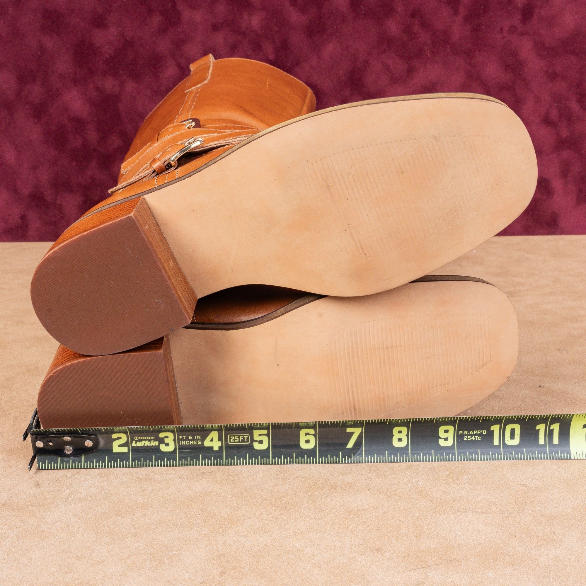 New Condition. Retails for $179. No signs of wear on the soles. Never-Worn. Leather upper, Fabric Lining and Rubber sole. Made in China. Round Toe. Slip-on style for easy on and off. SKU11472