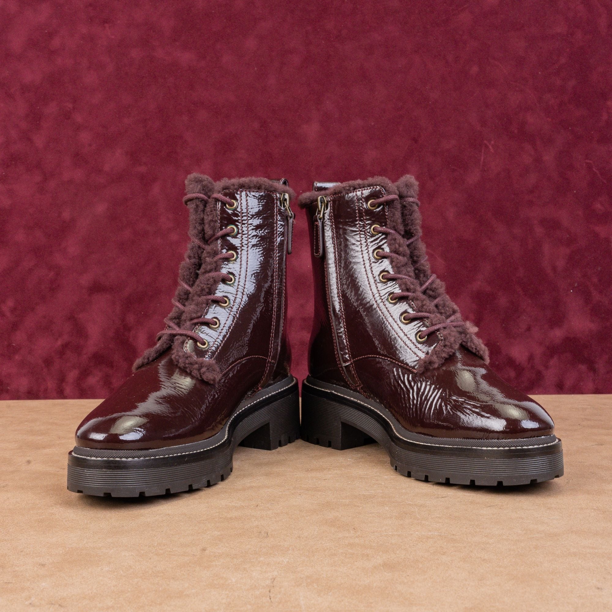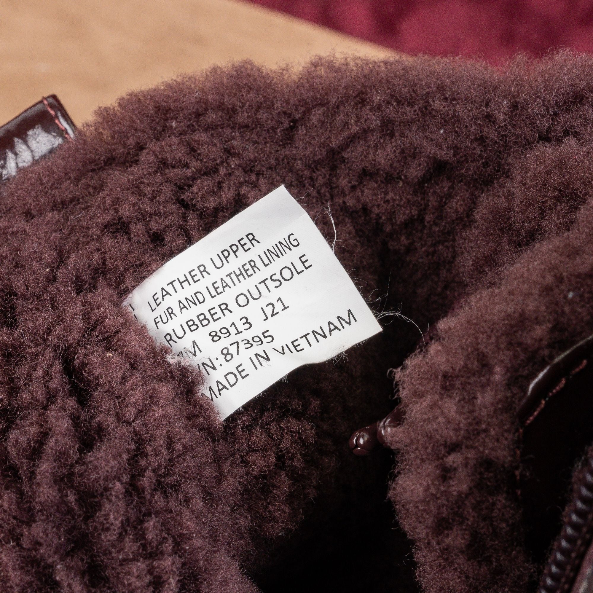 New Condition. No signs of wear on the soles. Never Worn. Made in Vietnam. Model # Miller Shearling. Retail $579. Patent Leather Upper, Geniune Shearling Lining and Rubber soles. Side zipper or Lace-up style for easy on and off. Round Toe. Please check photos carefully for more information and details. SKU11659