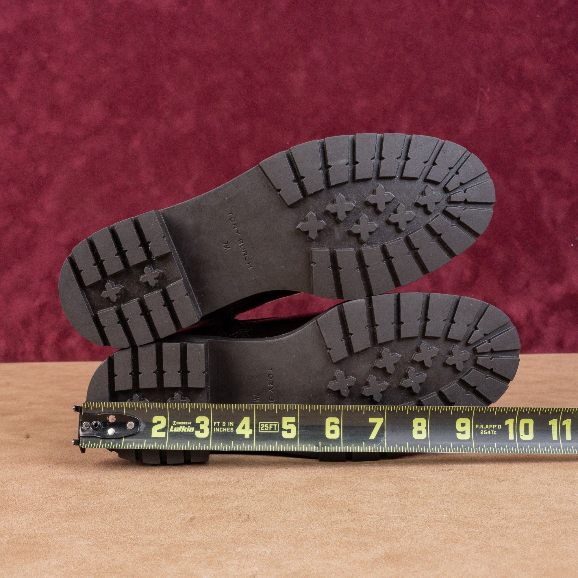 Tory Burch Wmn Miller Shearling Lined Burgundy Leather Zip Combat Boots sz 7