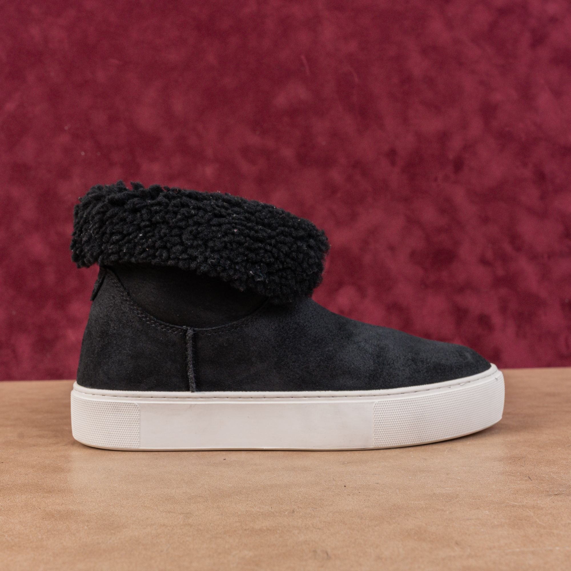 Crafted from velvety black suede and featuring a functional side zipper, the Lynus is the ultimate "cool-girl" alternative to the traditional winter boot.