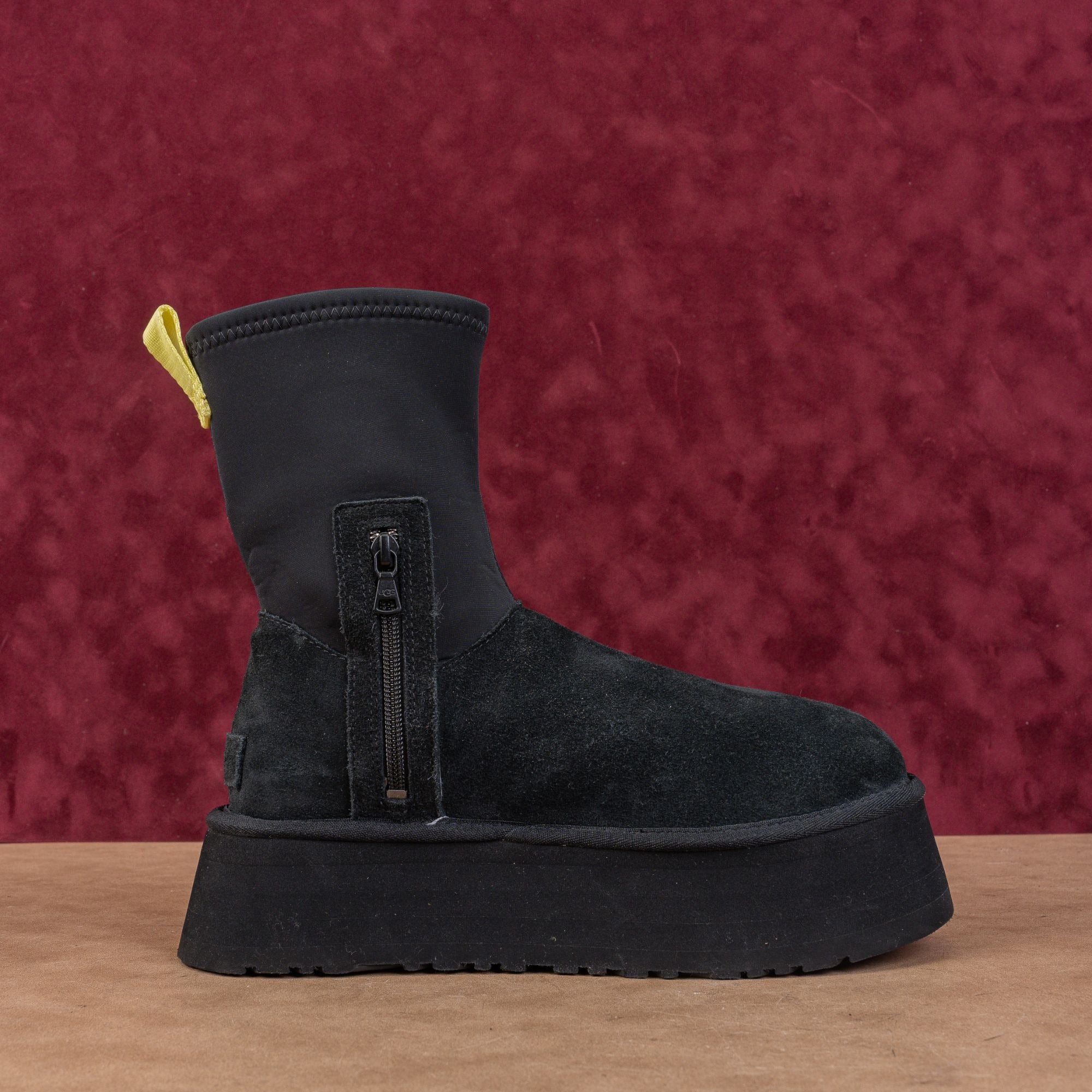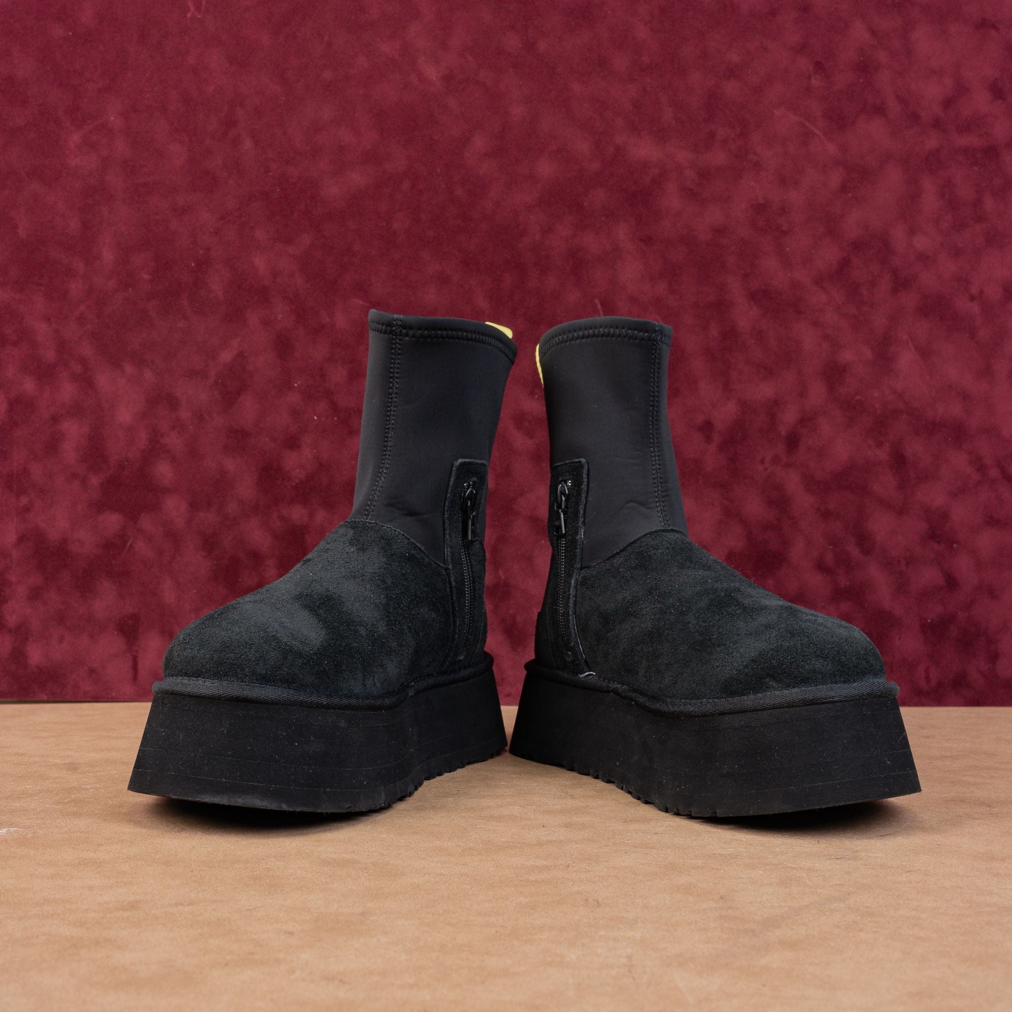 Featuring a rich black suede foot and a form-fitting, flexible calf-hugging shaft, the Dipper is designed to be worn with everything from oversized sweats to mini skirts. The exaggerated platform provides instant height without the weight.