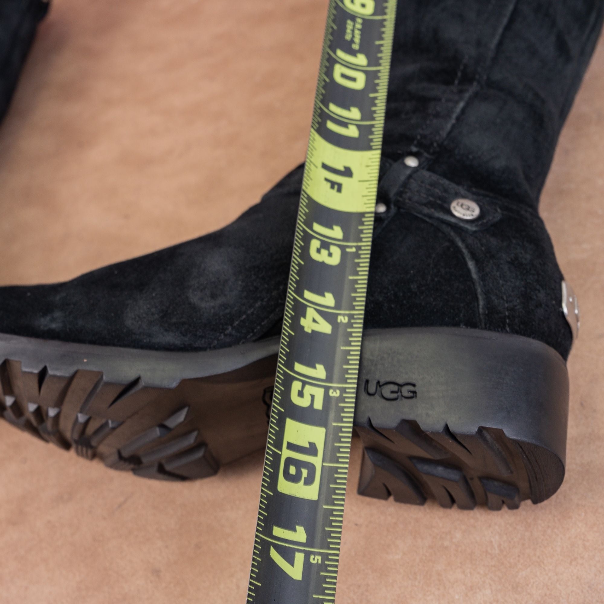 Excellent Condition. Minimal signs of wear on the soles. Pre-loved. Made in China. Model # Jillian. Retail $259. Suede Upper, Shearling Lining and Rubber soles. Side zipper style for easy on and off. Please check photos carefully for more information and details. SKU11852