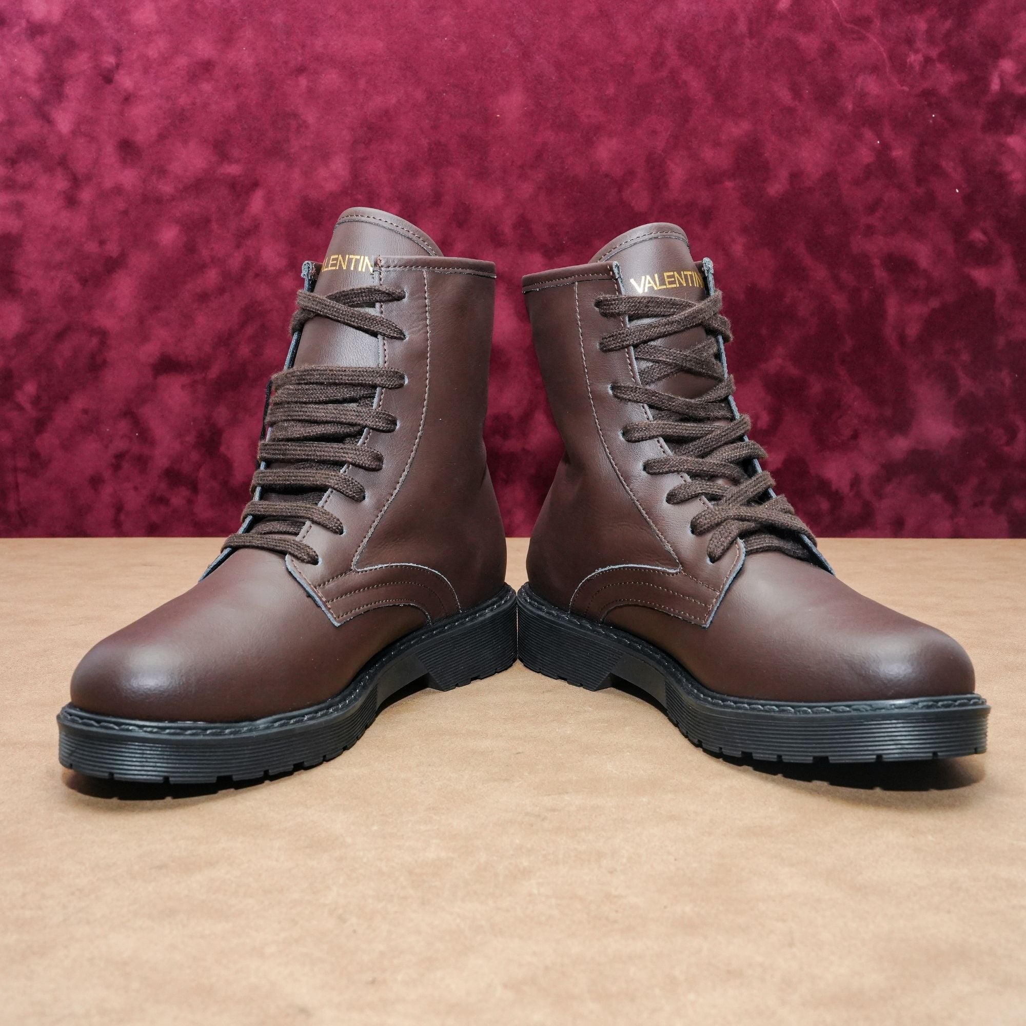 Command attention in these exquisite brown leather combat boots, where Valentino's signature craftsmanship meets downtown cool.