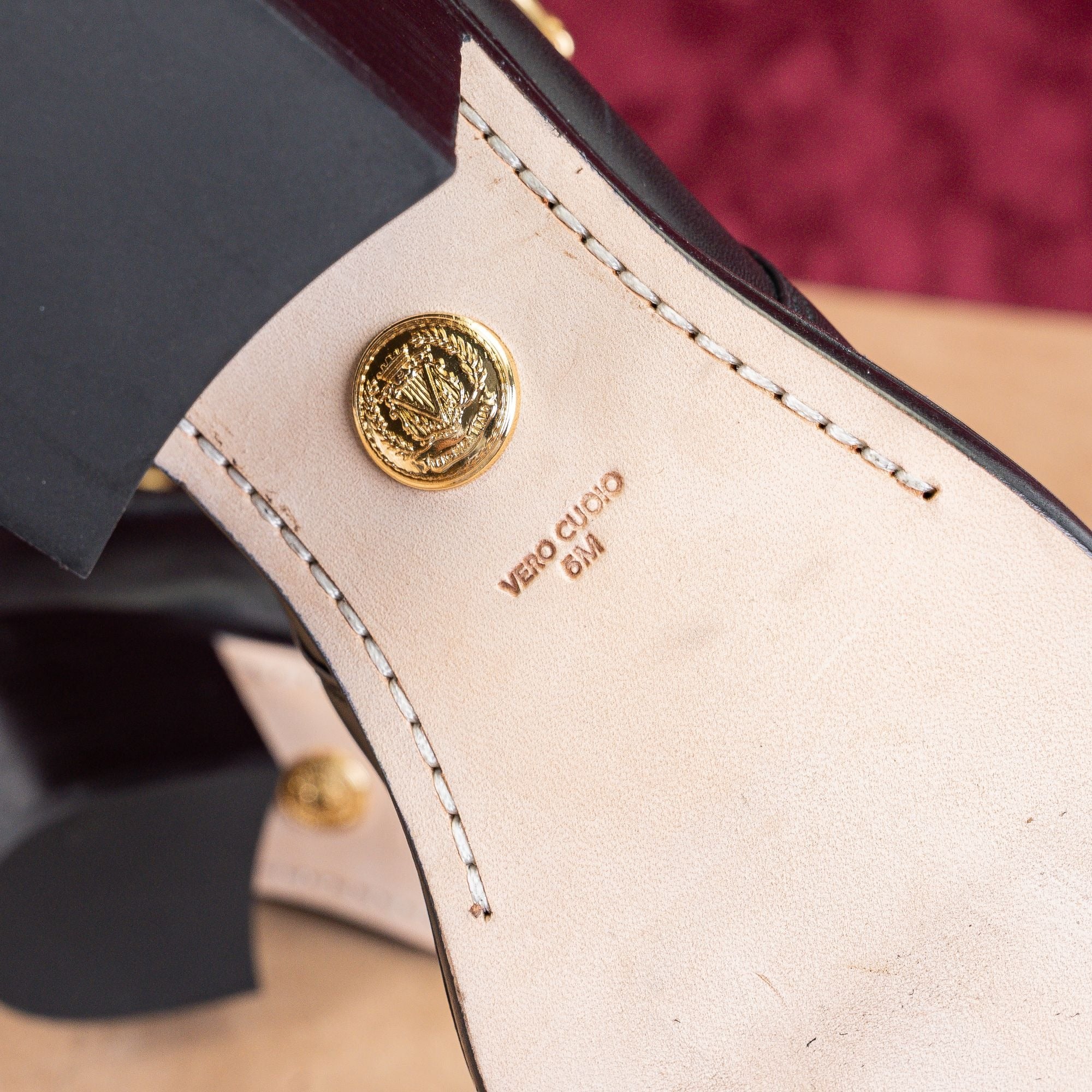 New Condition. No signs of wear on the soles. Never Worn. Made in China. Model # Sohelia. Retail $595. Leather Upper, Leather Lining and Leather soles. Adjustable Strap style for easy on and off. Round Toe. Please check photos carefully for more information and details. SKU11305