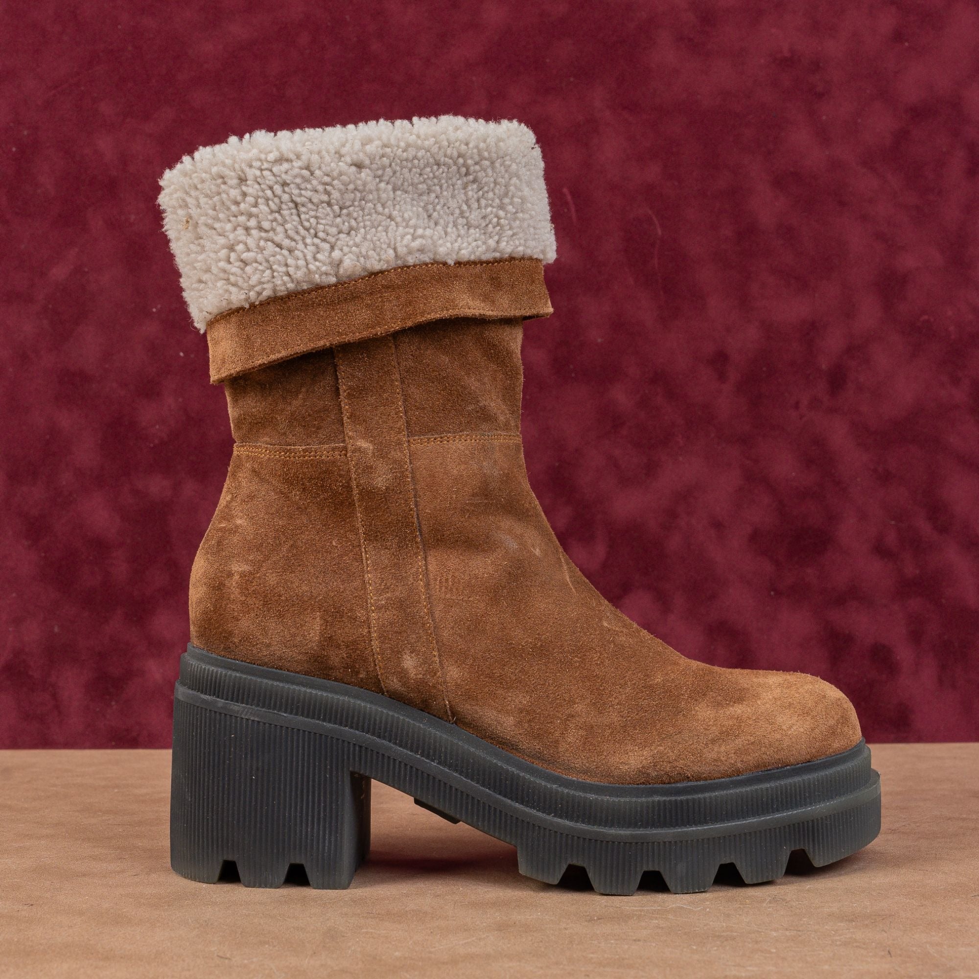 Crafted from premium brown suede and lined with cozy fleece, this chic boot offers superior comfort and quality, making it your perfect, stylish solution for cold weather.