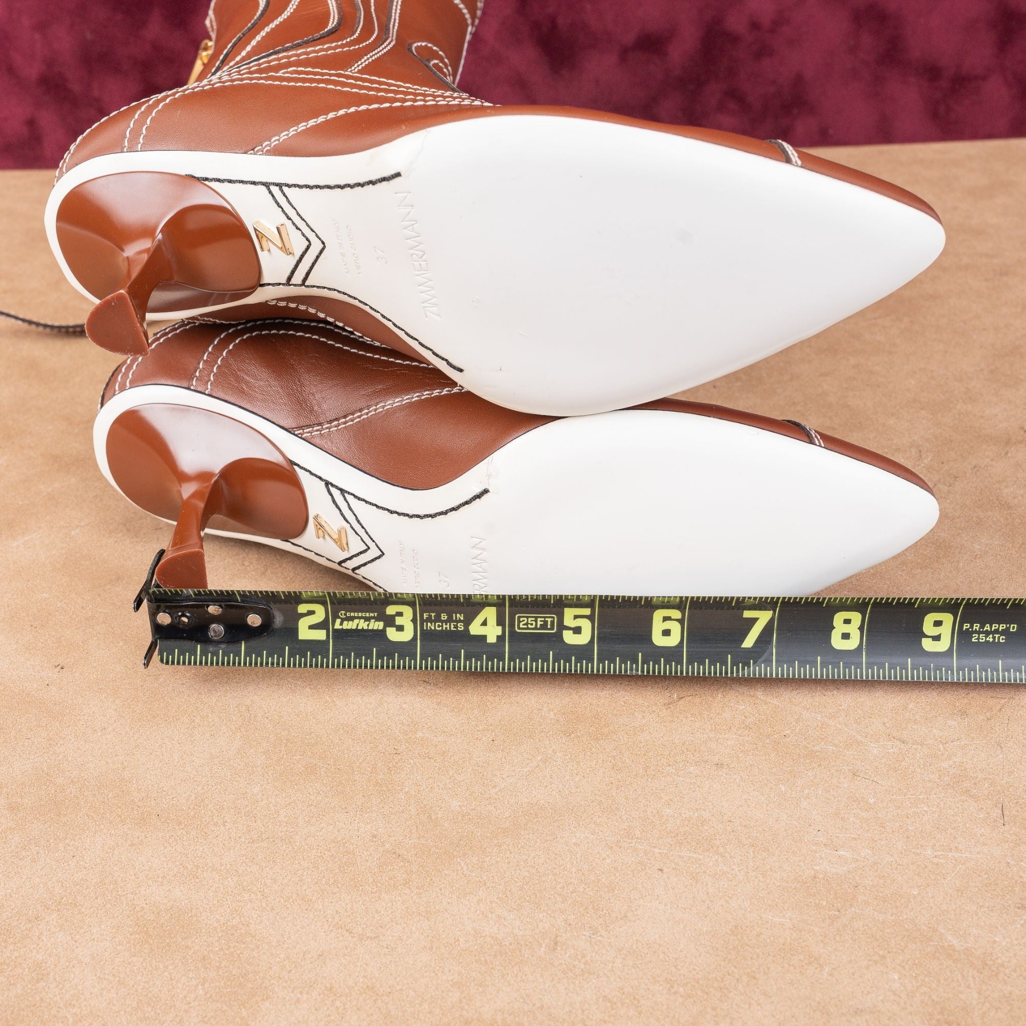 New Condition. No signs of wear on the soles. Never Worn. Retails for $1250. Made in Italy. Fine Leather Upper, Leather lining and Leather soles. Back zipper closure for easy on and off. Pointy toe. SKU11803