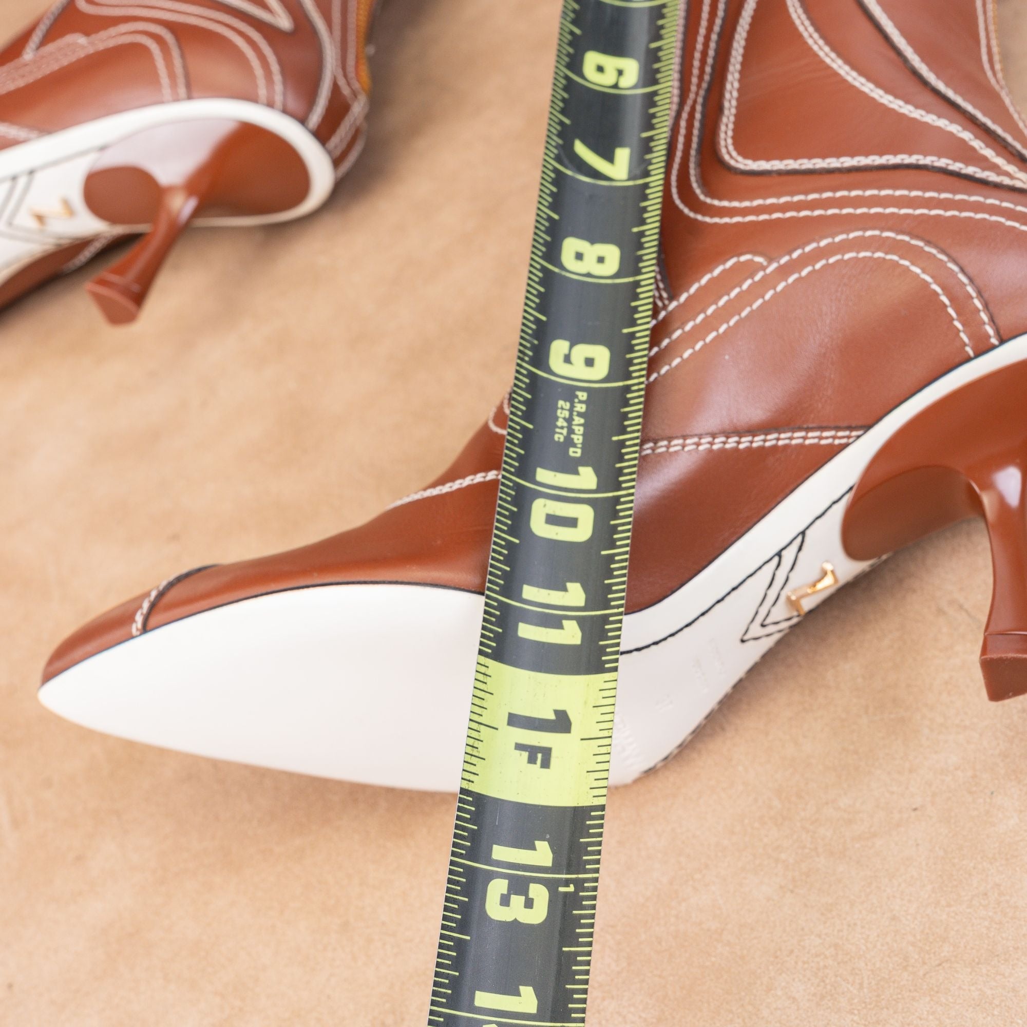 Known for their impeccable attention to detail, these boots feature intricate contrast topstitching that highlights the rich, chocolate-brown leather.