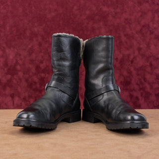 Aquatalia Women Valarie Black Suede Shearling Folded Mid Calf Boots sz 8