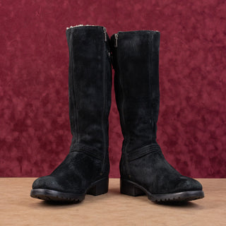 UGG Women Jillian Black Suede Shearling Lined Zip Moto Biker Boots sz 6