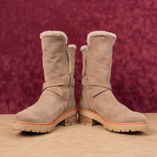 Sam Edelman Women Jailyn Taupe Waterproof Suede Plush Lined Zip Lug Boots sz 7.5