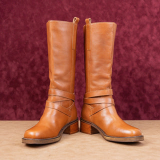 Frye Women Melissa Button 2 Tan Leather Zip Equestrian Riding Boots sz 5.5
