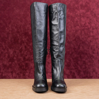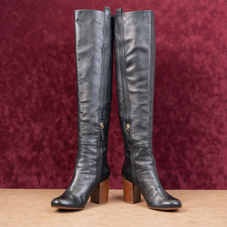 Browns Women Vintage 90s Black Leather Square Toe Zip Knee Boots sz 7US EUR37