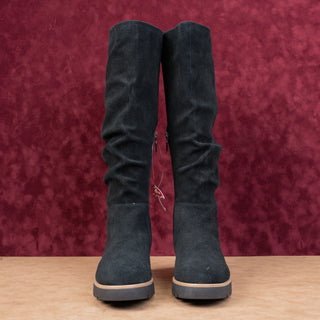 ZIGIny Women Black Suede Riding Slip-on Wedge Heel OTK Fashion Boots sz 7