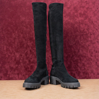 Stuart Weitzman Women Soho Black Suede Slip-on Platform OTK Fashion Boots sz 10.5