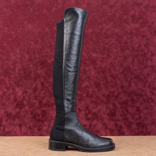 Stuart Weitzman Women 5050 Bold Black Leather Stretch 40mm OTK Boots sz 6.5