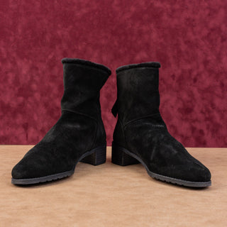 Stuart Weitzman Women Black Suede Soft Faux Fur Lined Back Zip Ankle Boots sz 9.5