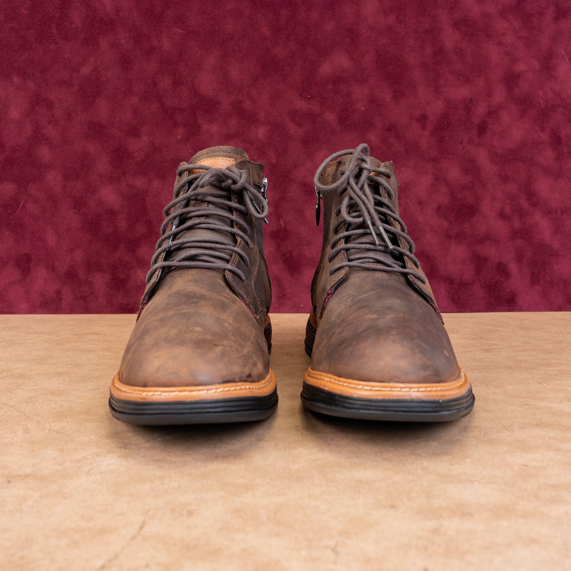 They are crafted from a rich, durable brown leather in a classic, versatile workwear/combat boot style.