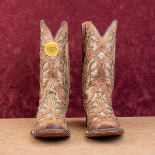 Corral Women Orix Glitter Brown Leather Cowboy Western Square Toe Boots sz 10